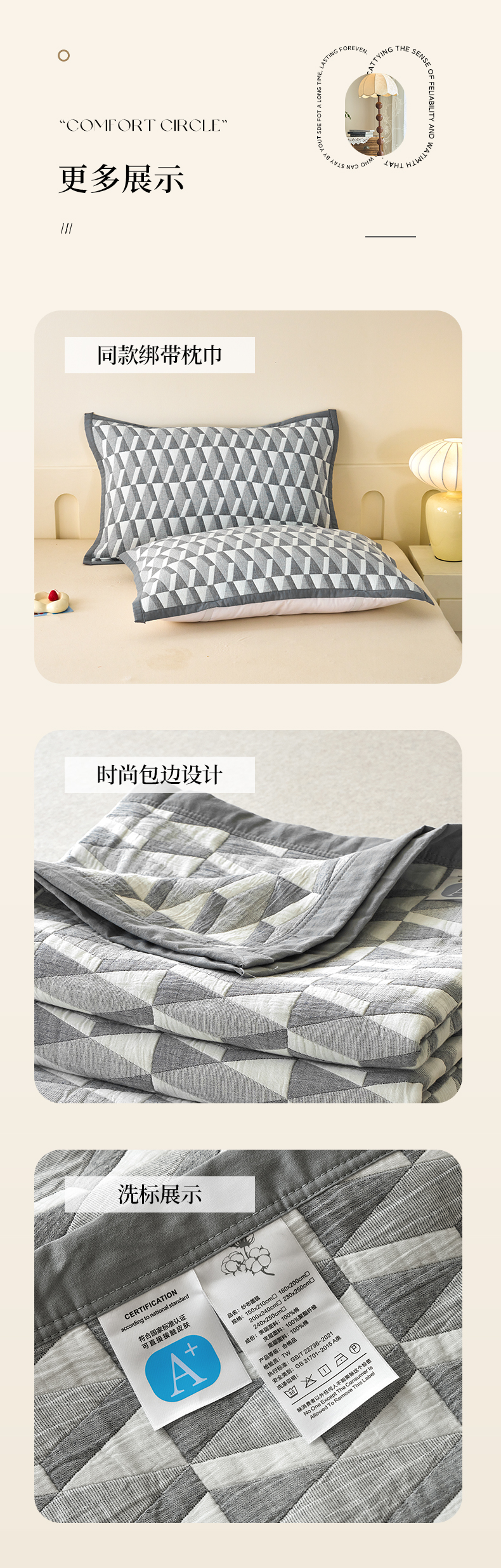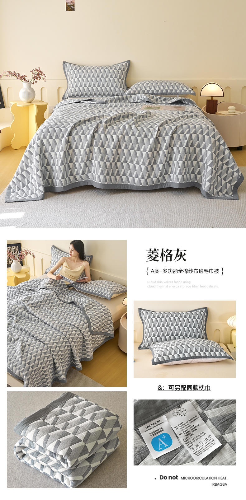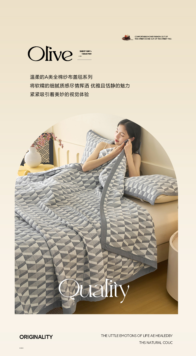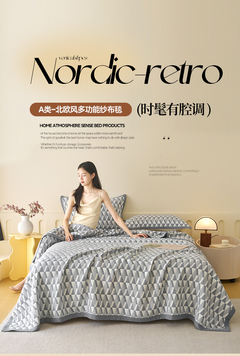 当前位置: 91家纺网 > 商品网购 > 被子 > 夏被 > 棠薇家纺 2025新款北欧风盖毯毛巾被 菱格灰