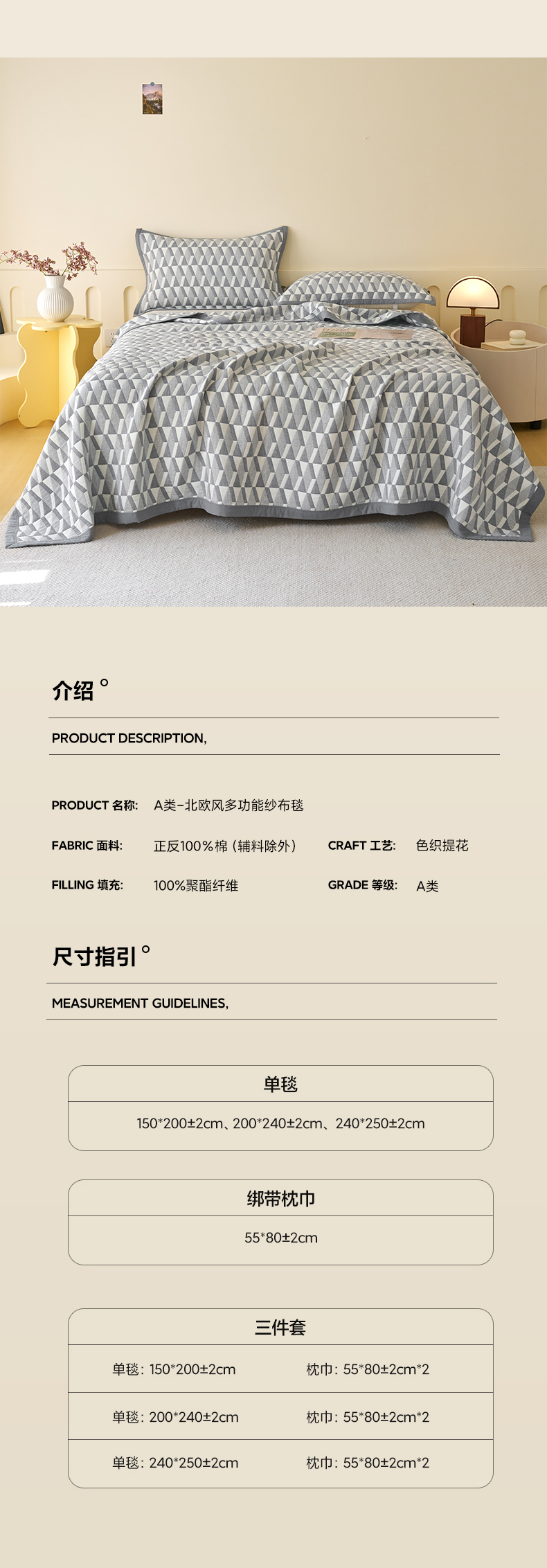 • 适用季节: 空调被/夏凉被