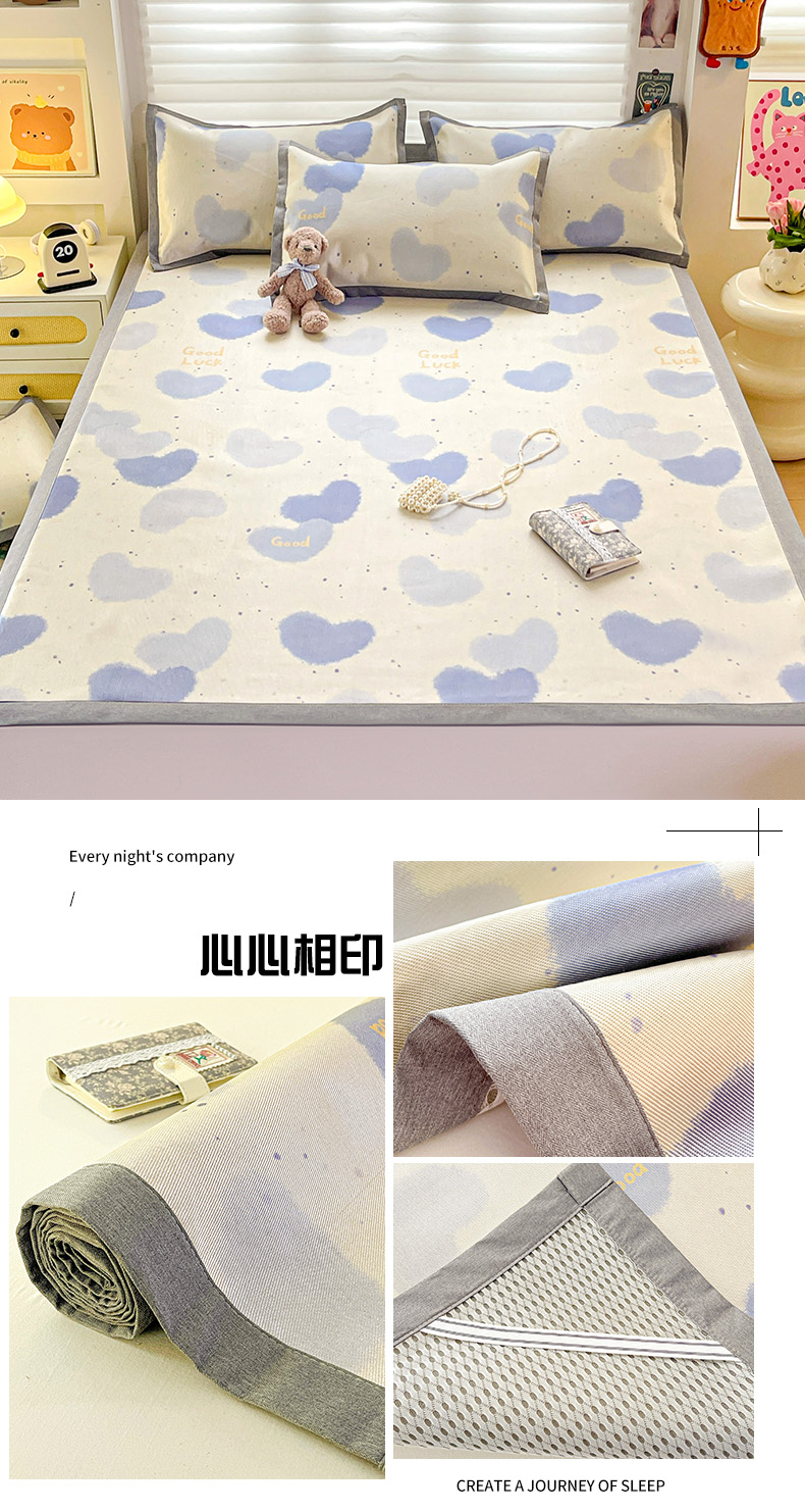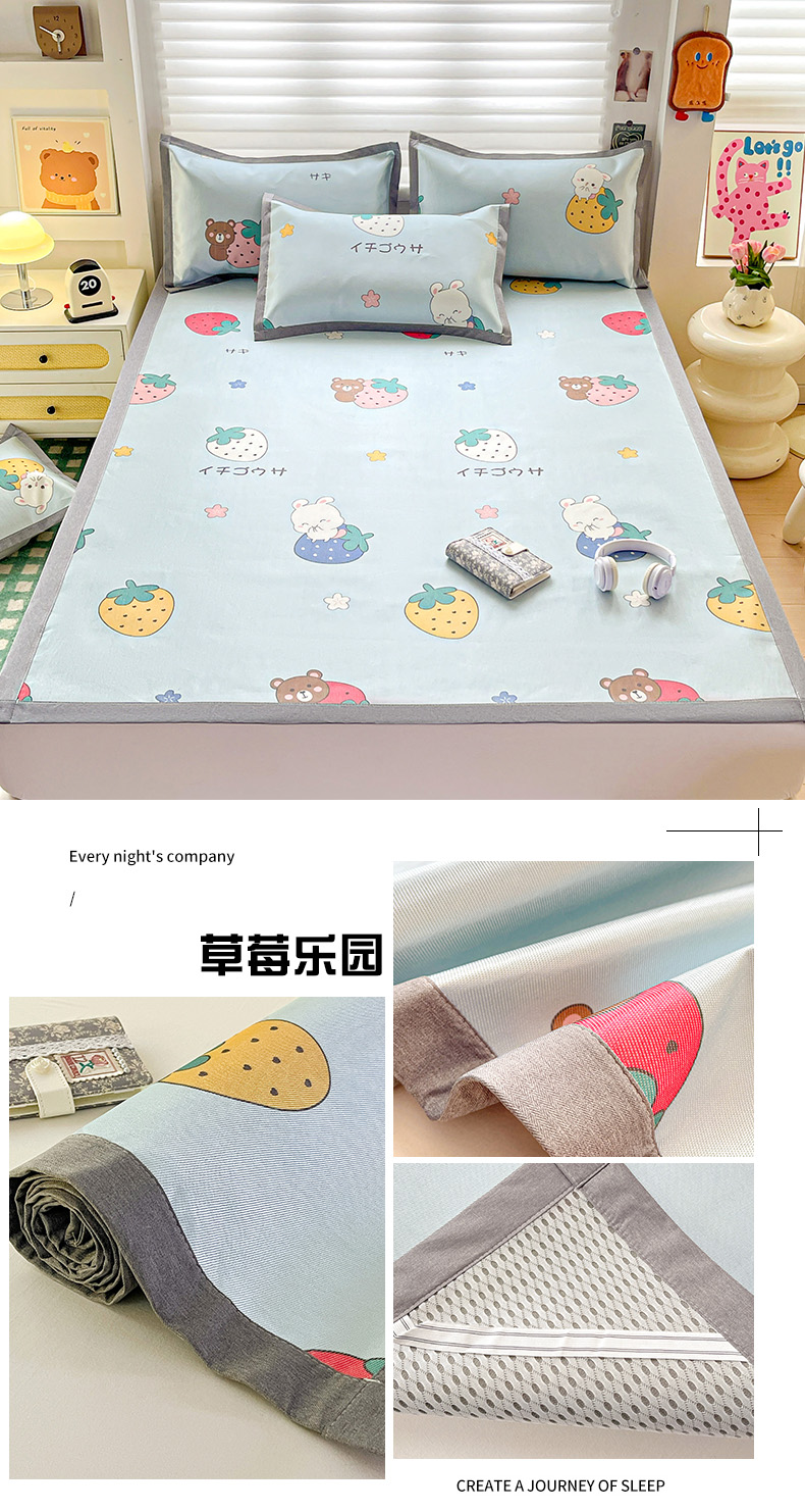 (总)金盛纺 2025新款A类数码印花冰丝席-床席款,草莓乐园,蛋仔-粉,蛋仔-蓝,风铃,航海家,天女散花,甜心果,小青蛙,心心相印