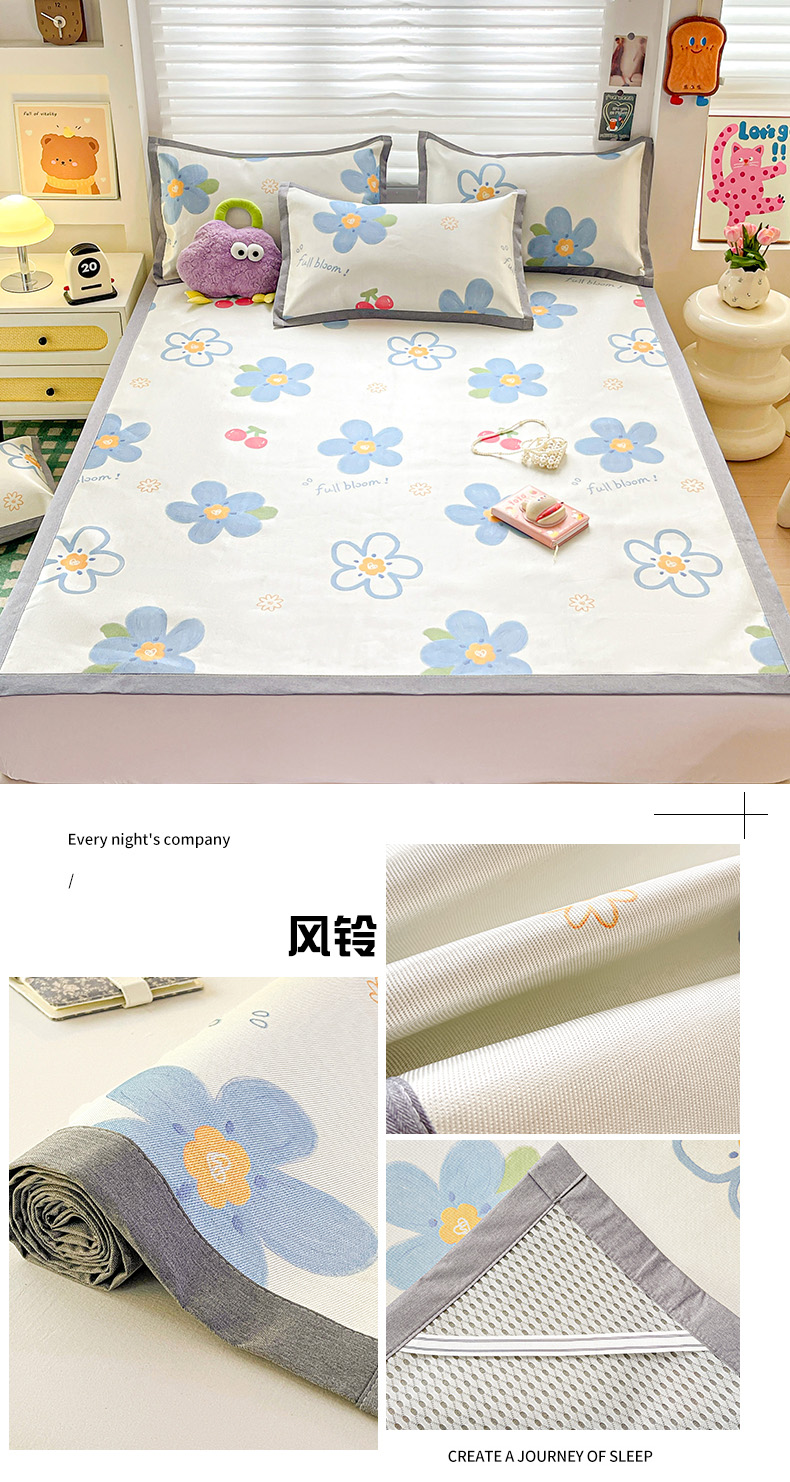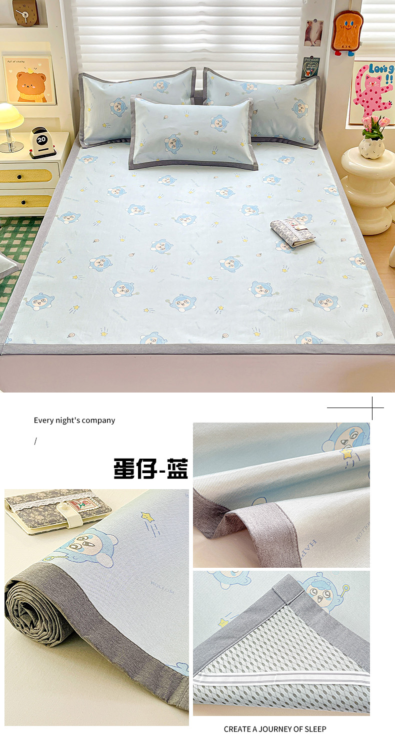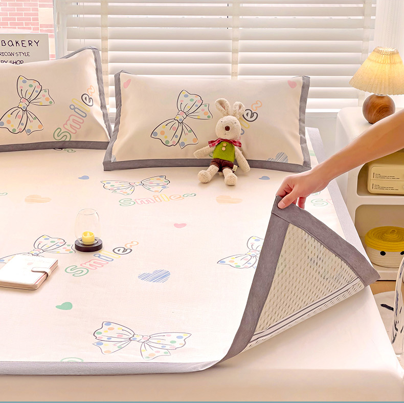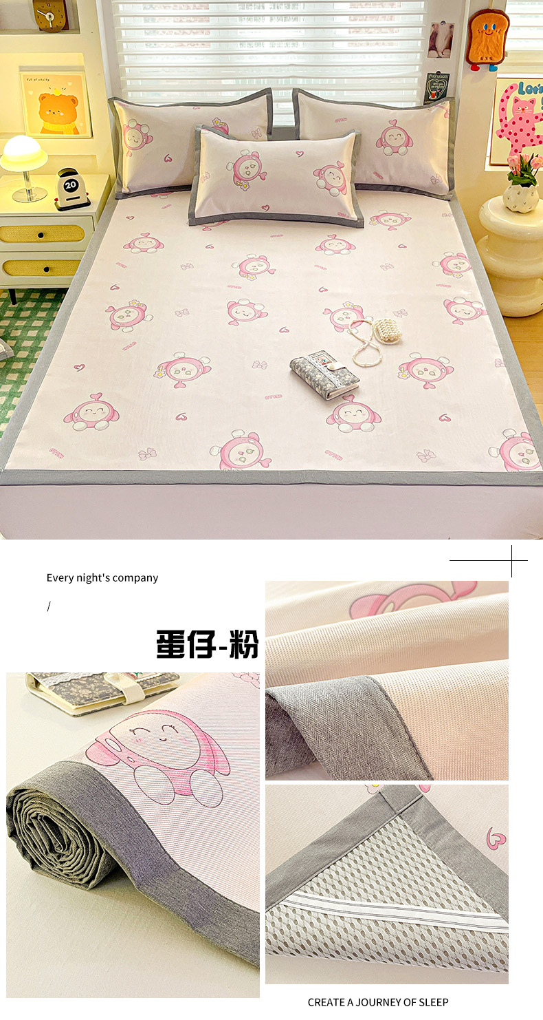(总)金盛纺 2025新款A类数码印花冰丝席-床笠款,蛋仔-粉,蛋仔-蓝,风铃,航海家,天女散花,甜心果,爱心,北极熊,春意,蝴蝶结,萌恐龙,趴趴熊,千鸟格-灰,爱心小熊,星辰-兰,幸运兔,绿意百合