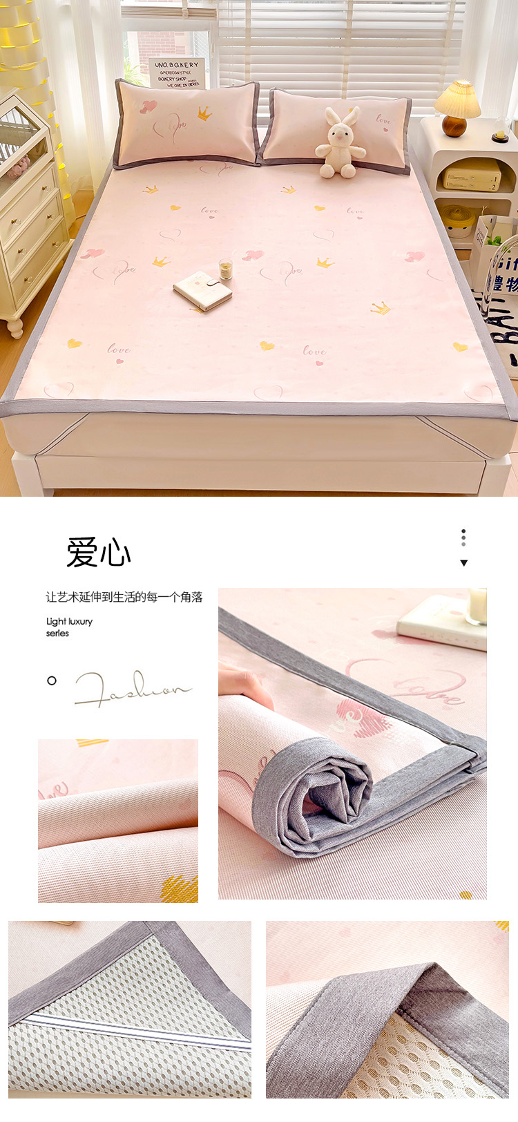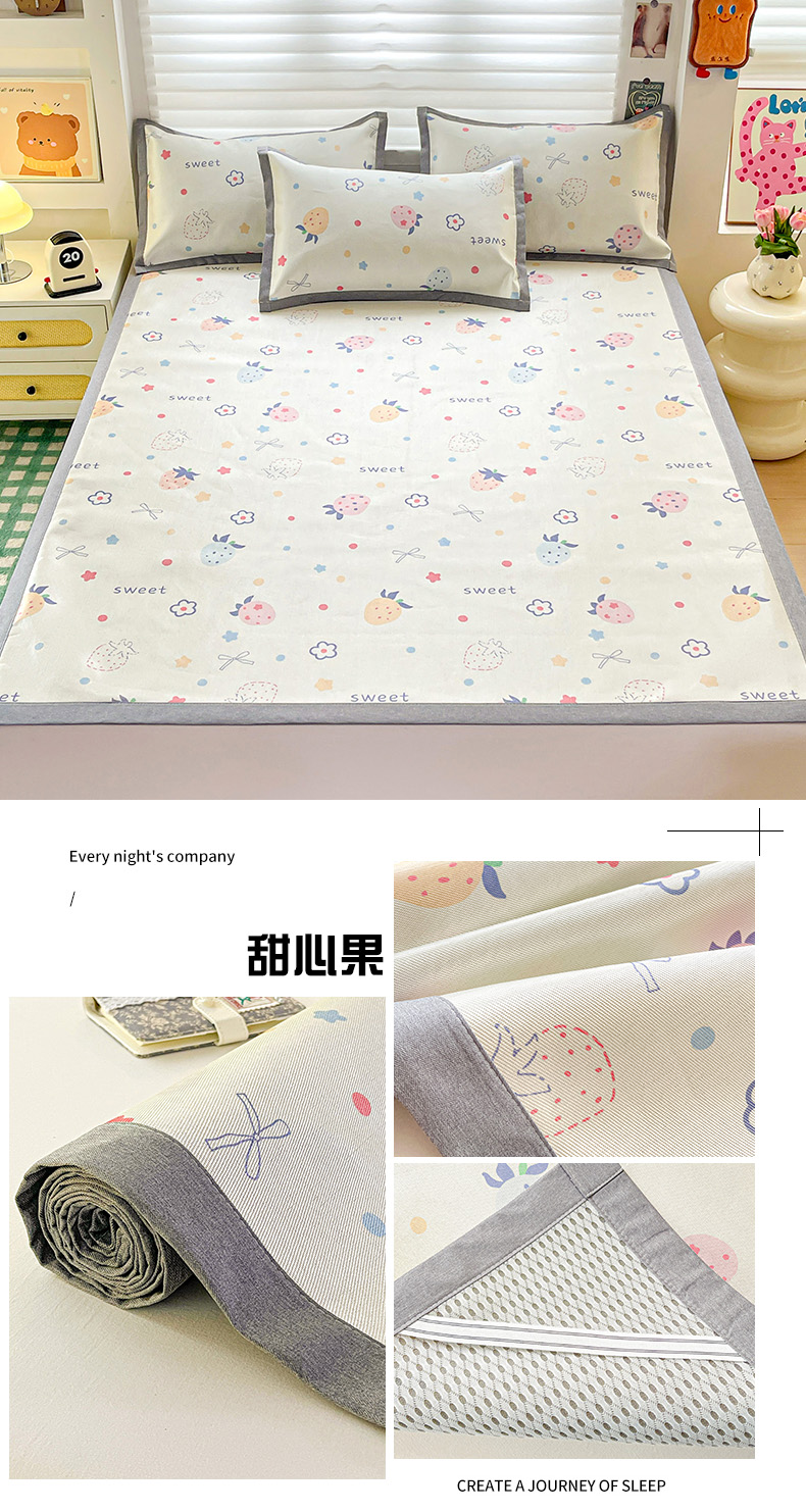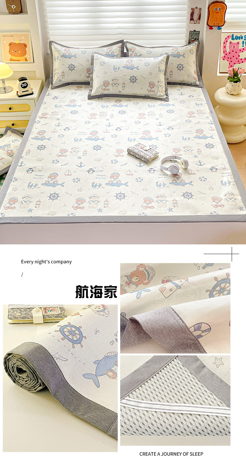 (总)金盛纺 2025新款A类数码印花冰丝席-床笠款,蛋仔-粉,蛋仔-蓝,风铃,航海家,天女散花,甜心果,爱心,北极熊,春意,蝴蝶结,萌恐龙,趴趴熊,千鸟格-灰,爱心小熊,星辰-兰,幸运兔,绿意百合