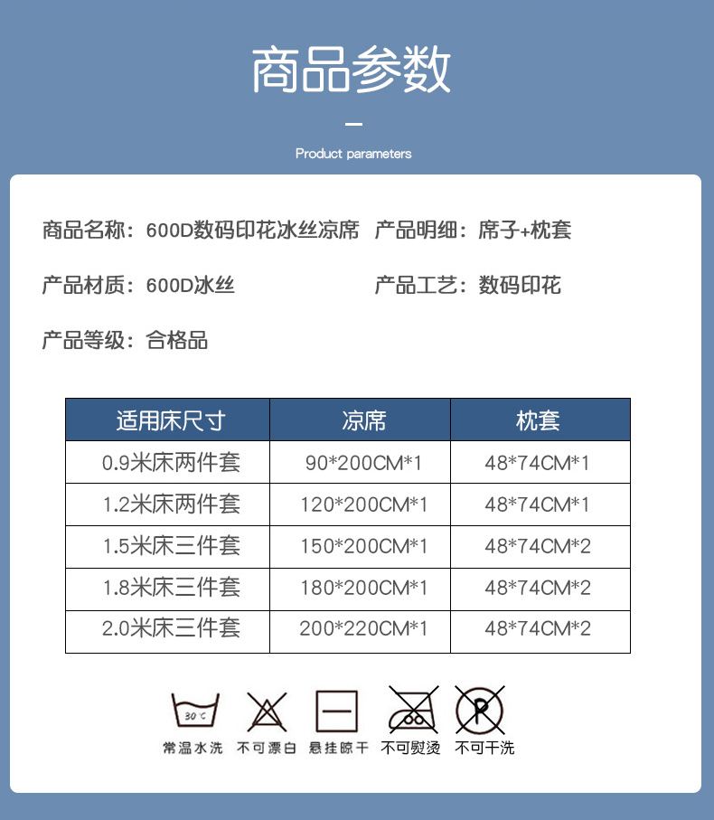 商品名称:(总)金盛纺 2025新款A类数码印花冰丝席-床席款
