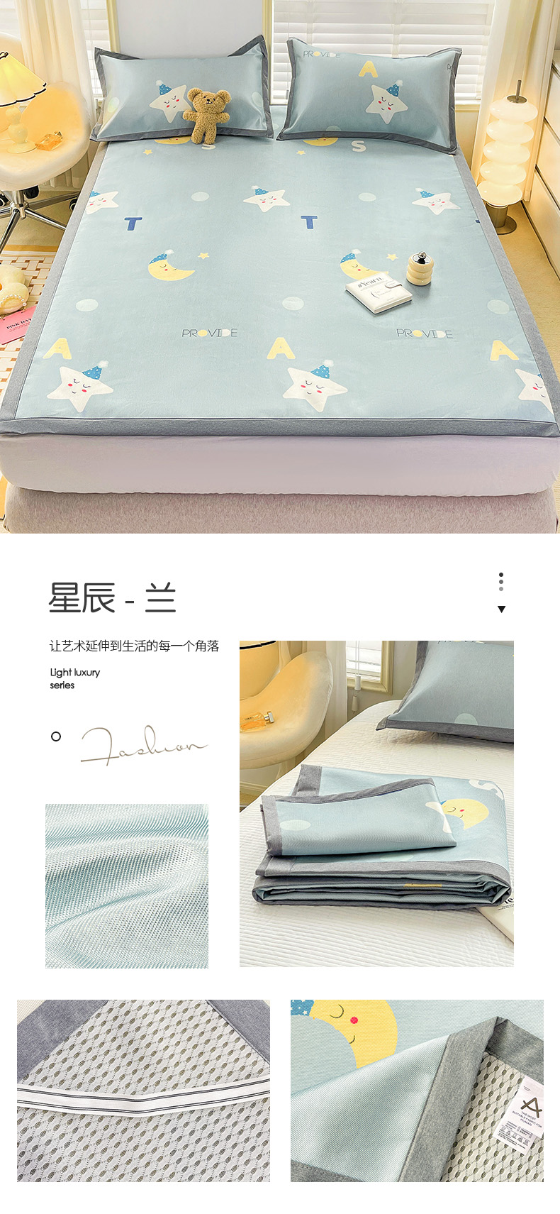 金盛纺 2025新款A类数码印花冰丝席-床席款星辰-兰-床席款,星辰-兰-床席款