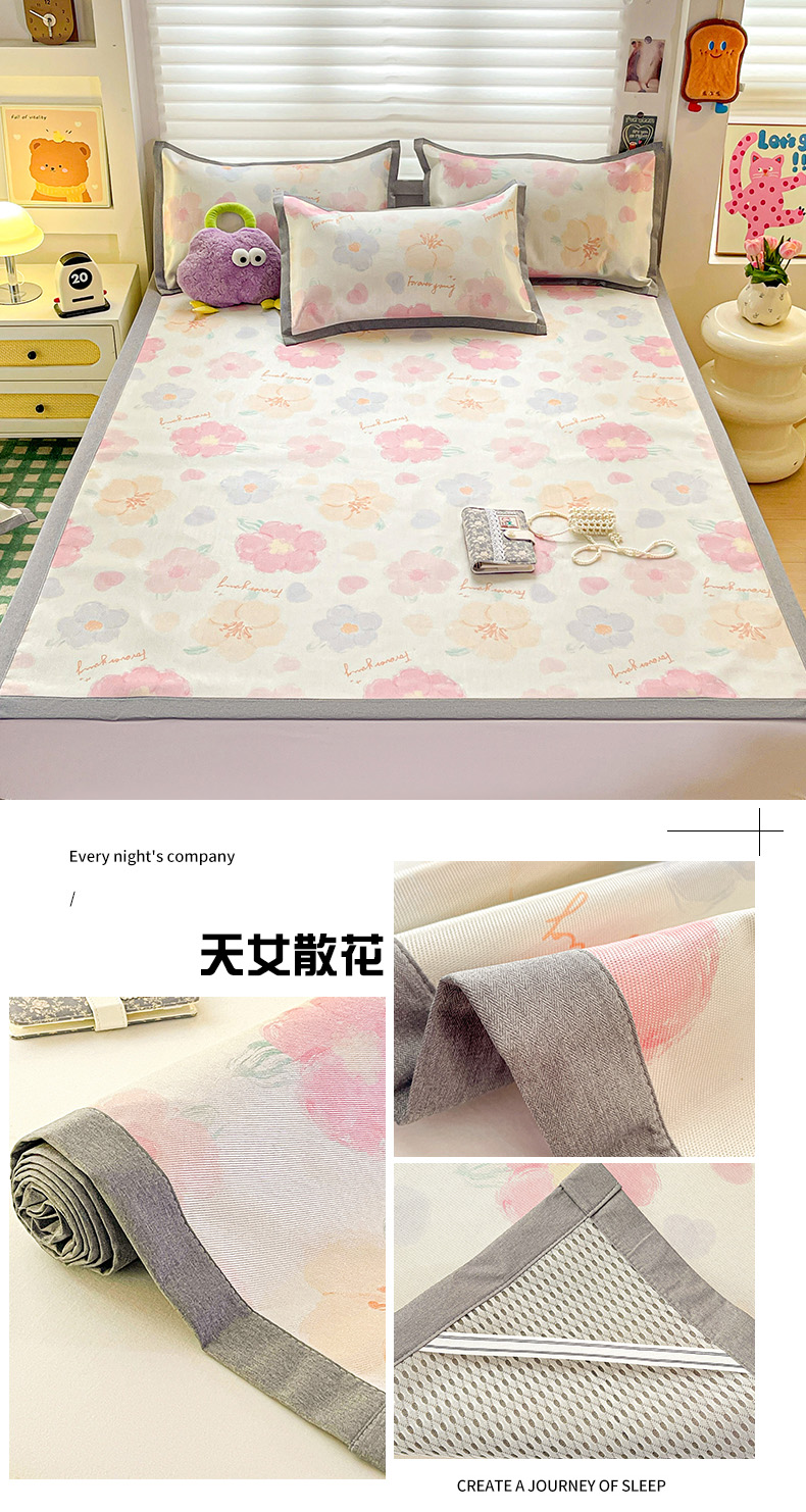 (总)金盛纺 2025新款A类数码印花冰丝席-床席款