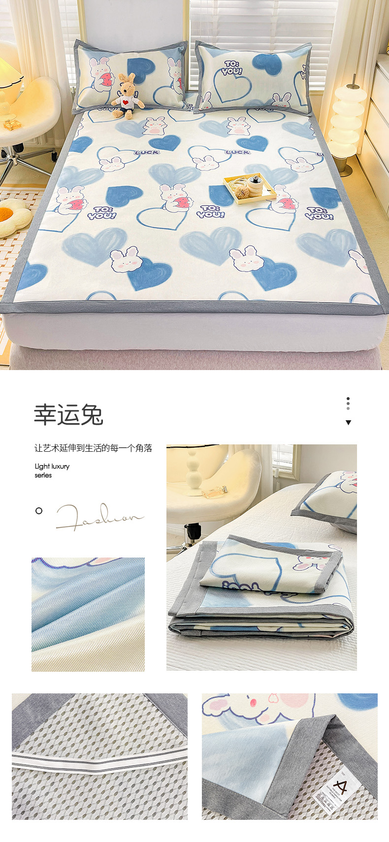 金盛纺 2025新款A类数码印花冰丝席-床席款幸运兔-床席款,幸运兔-床席款