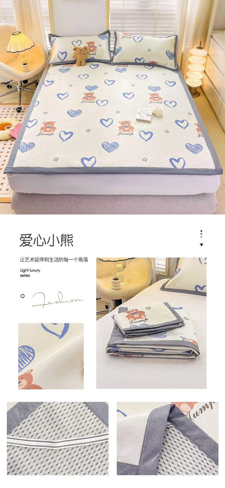 金盛纺 2025新款A类数码印花冰丝席-床席款爱心小熊-床席款,爱心小熊-床席款