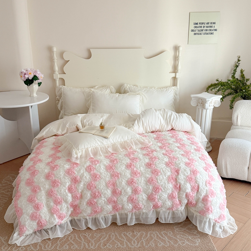 吾欢心 2025新款玫瑰公主四件套 玫瑰公主白