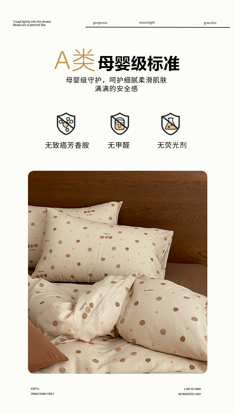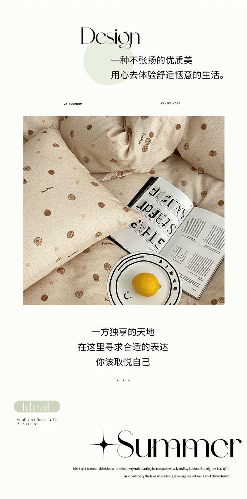 当前位置: 91家纺网 > 商品网购 > 床品套件 > 四件套 > 全棉普通四件套 > 时光里 2025新款A类全棉双层纱套件第一波 南瓜小贝