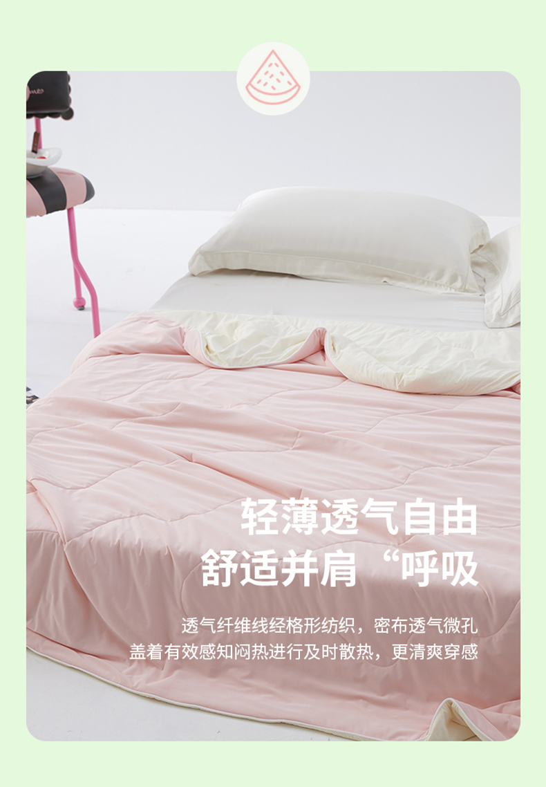 2025春夏新款A类母婴级西瓜啵啵凉感被锦氨夏凉被空调被 蜜桃粉+淡雅黄