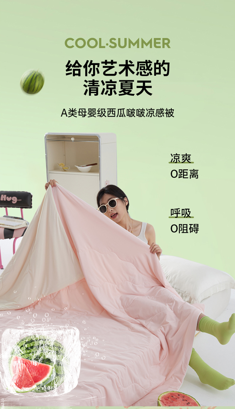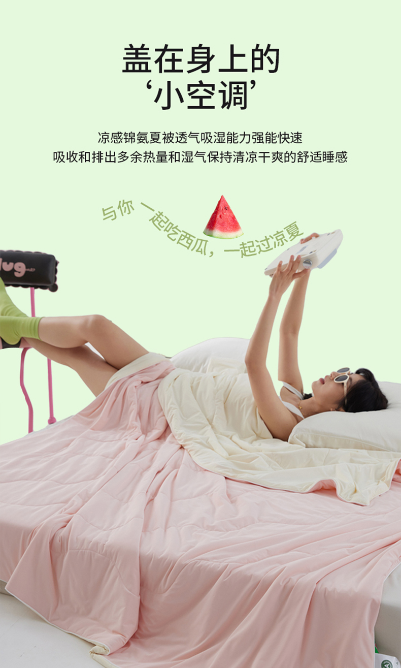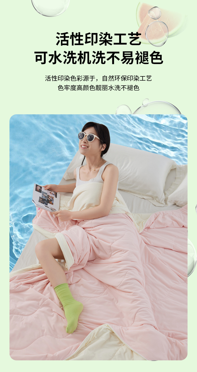 商品名称:2025春夏新款A类母婴级西瓜啵啵凉感被锦氨夏凉被空调被 蜜桃粉+淡雅黄