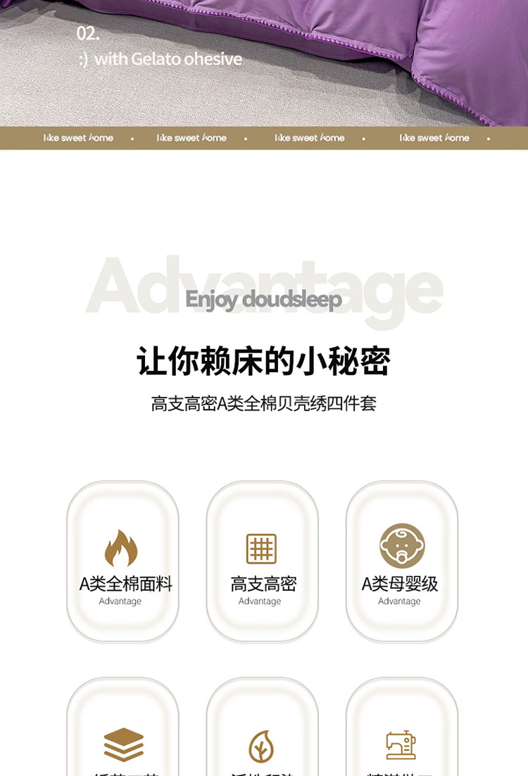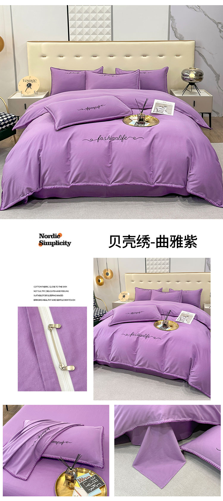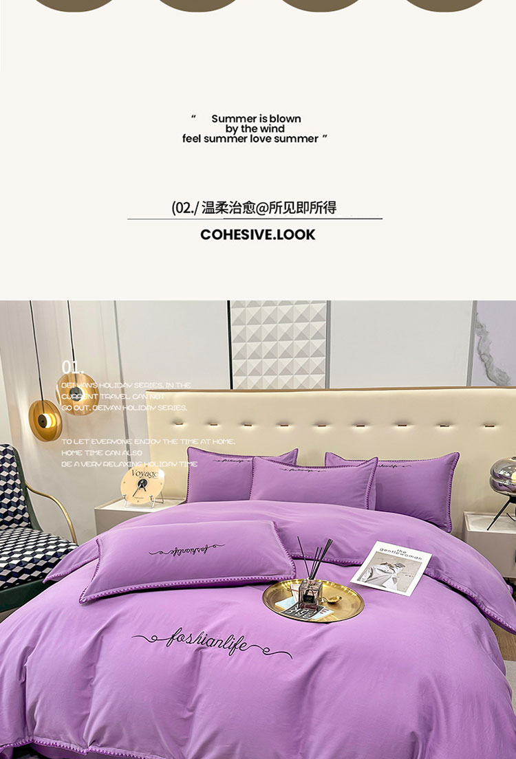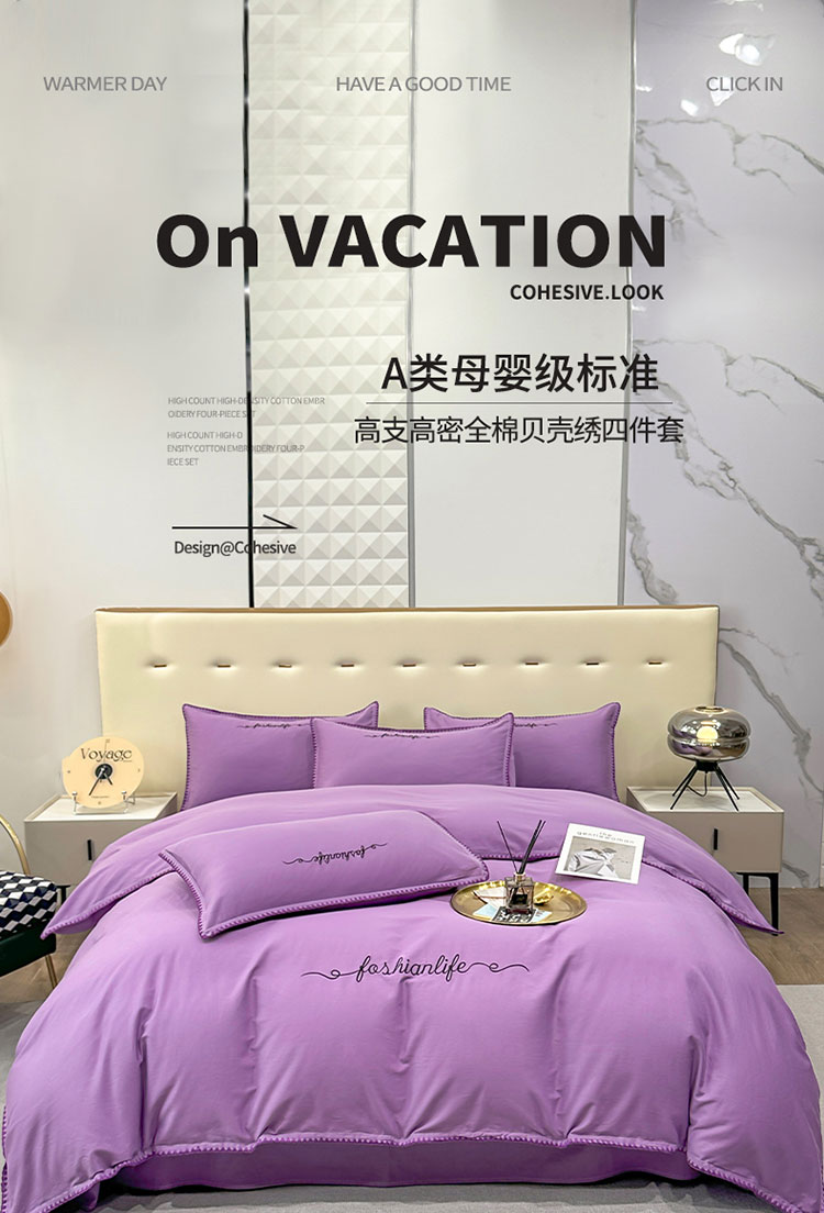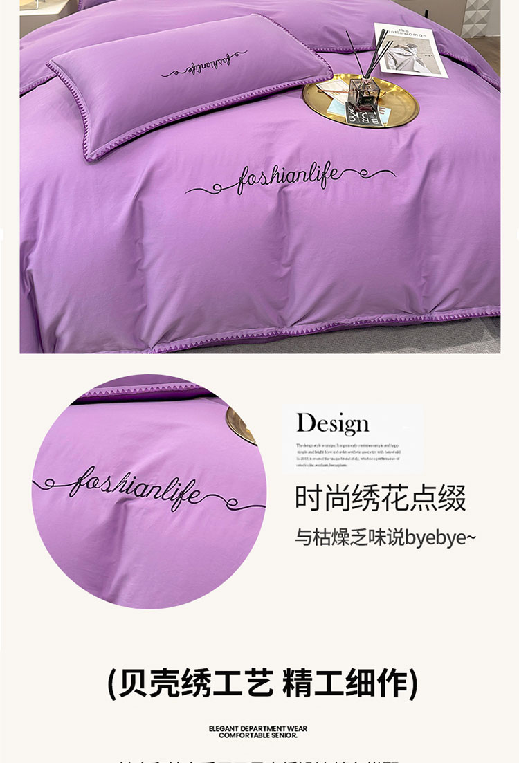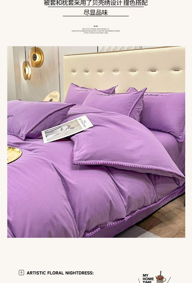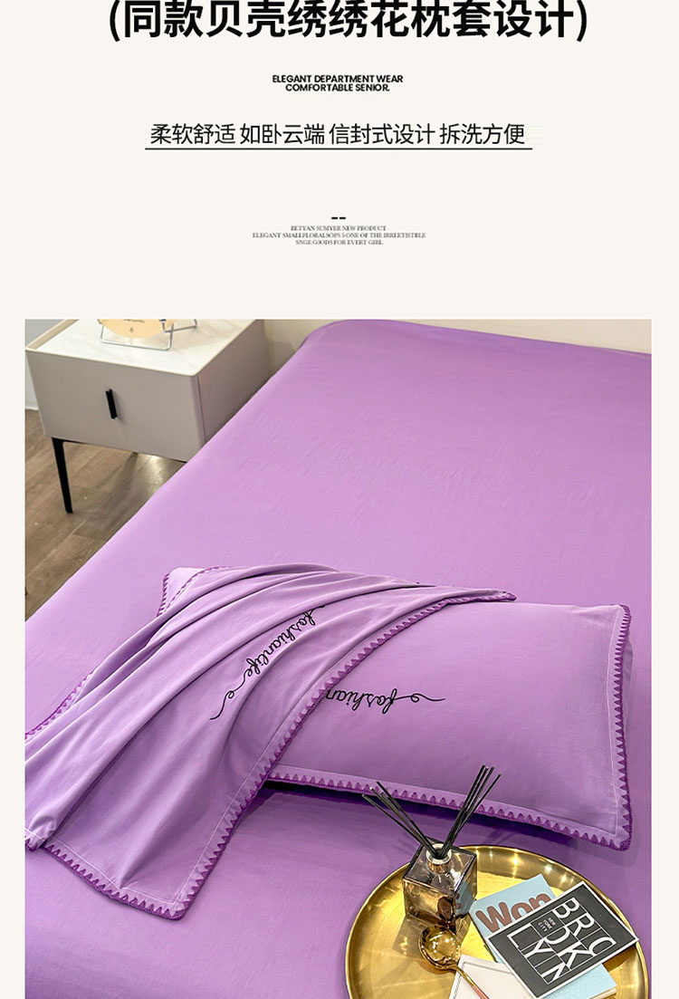 当前位置: 91家纺网 > 商品网购 > 床品套件 > 四件套 > 全棉普通四件套 > 2025新款13374全棉母婴级贝壳绣宽边枕套纯色刺绣三角针四件套全棉贡缎新疆长绒字母款 贝壳绣-典雅紫