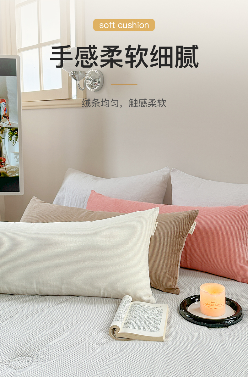 商品名称:美茉家居 2025新款灯芯绒长枕 月光白