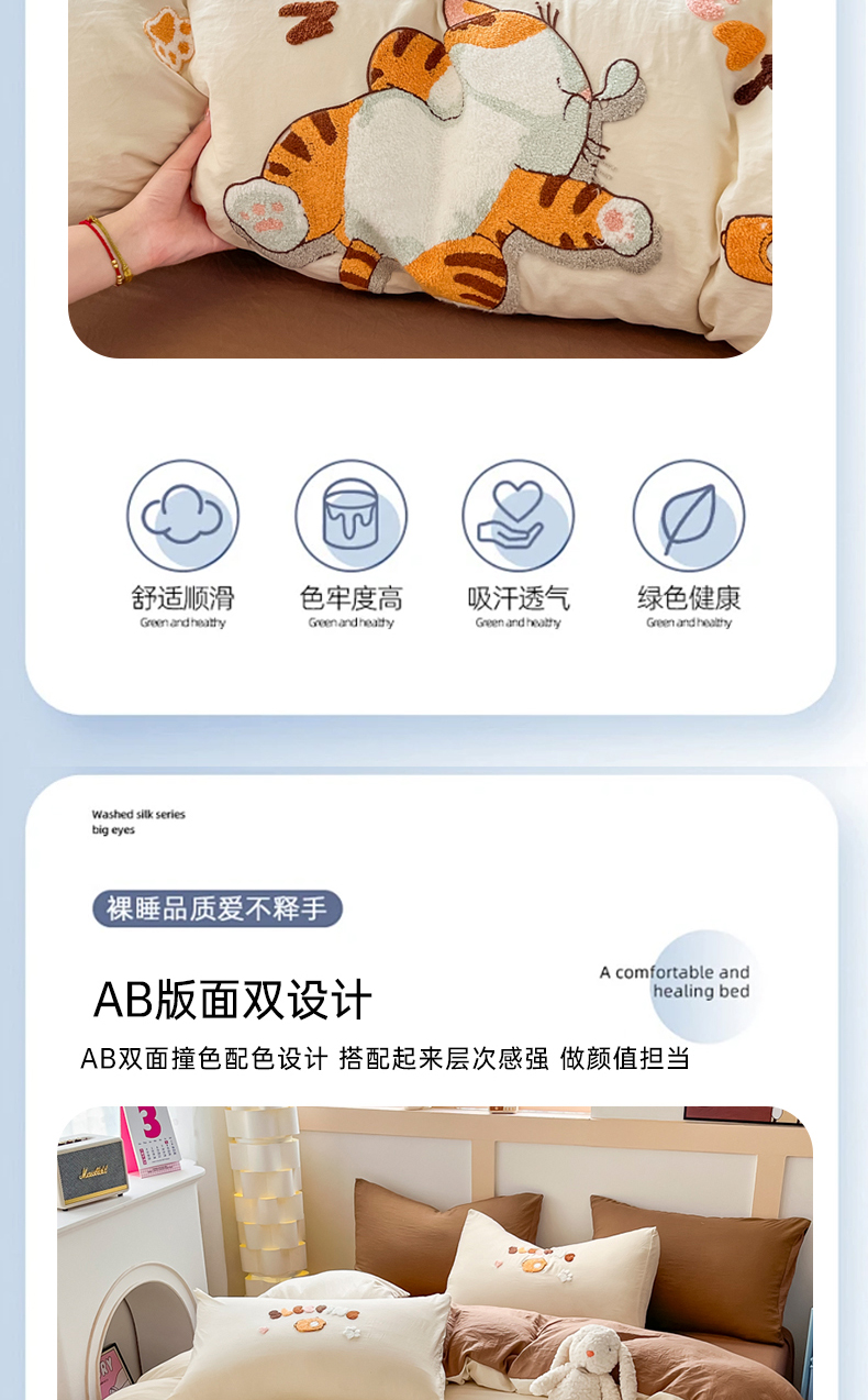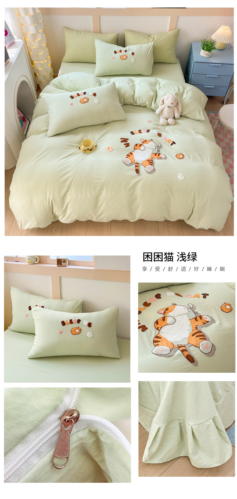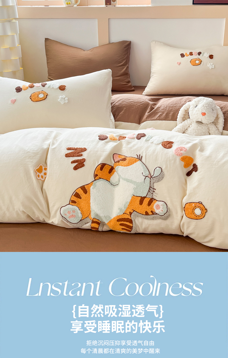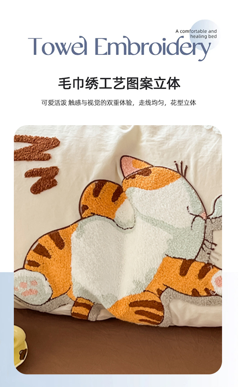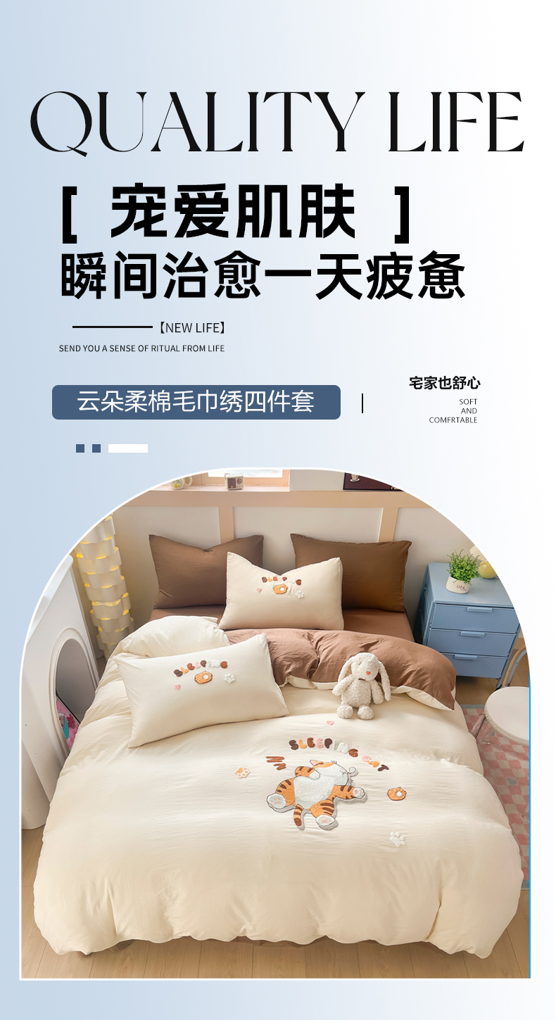 商品名称:(总)青螺家纺 2025春夏新款云朵棉毛巾绣卡通可爱三件套四件套学生套件