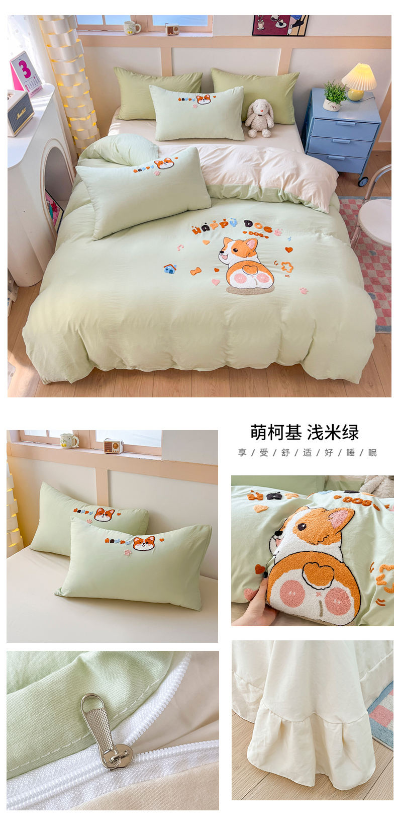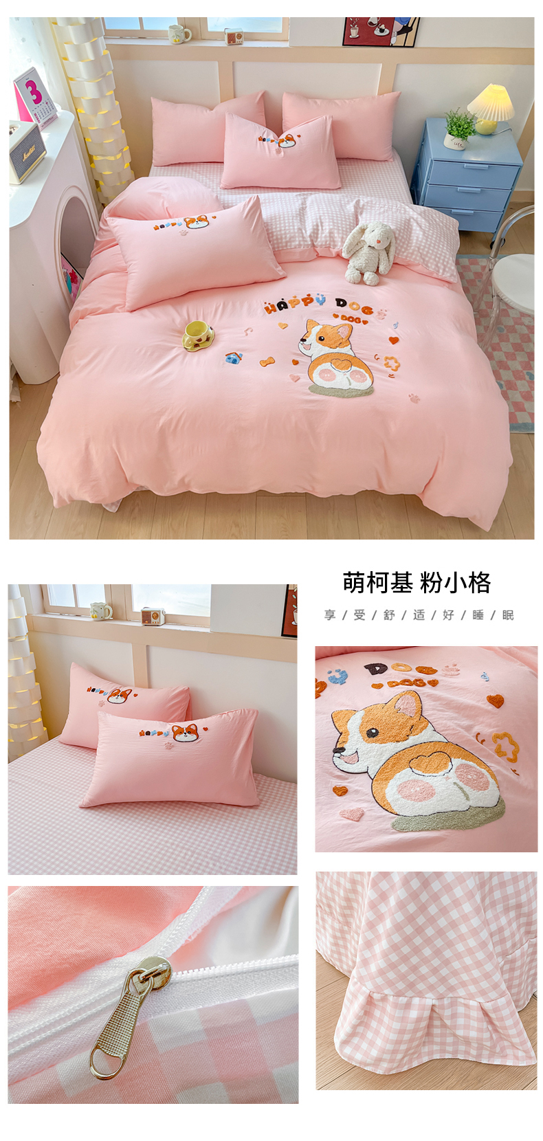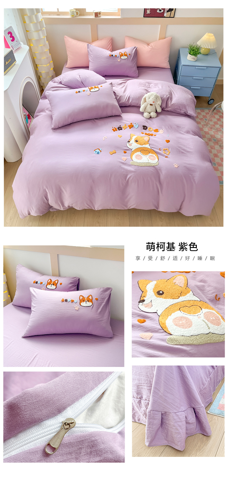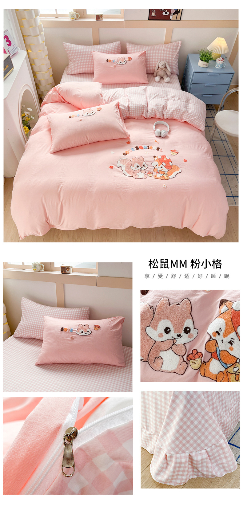 商品名称:(总)青螺家纺 2025春夏新款云朵棉毛巾绣卡通可爱三件套四件套学生套件