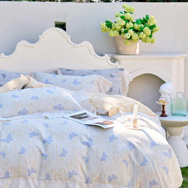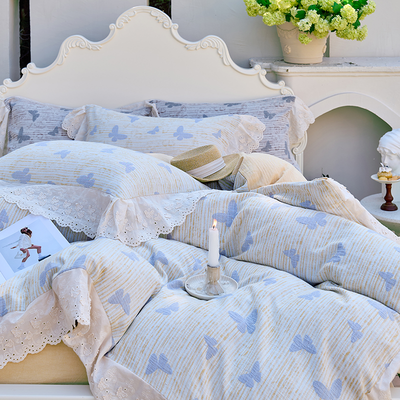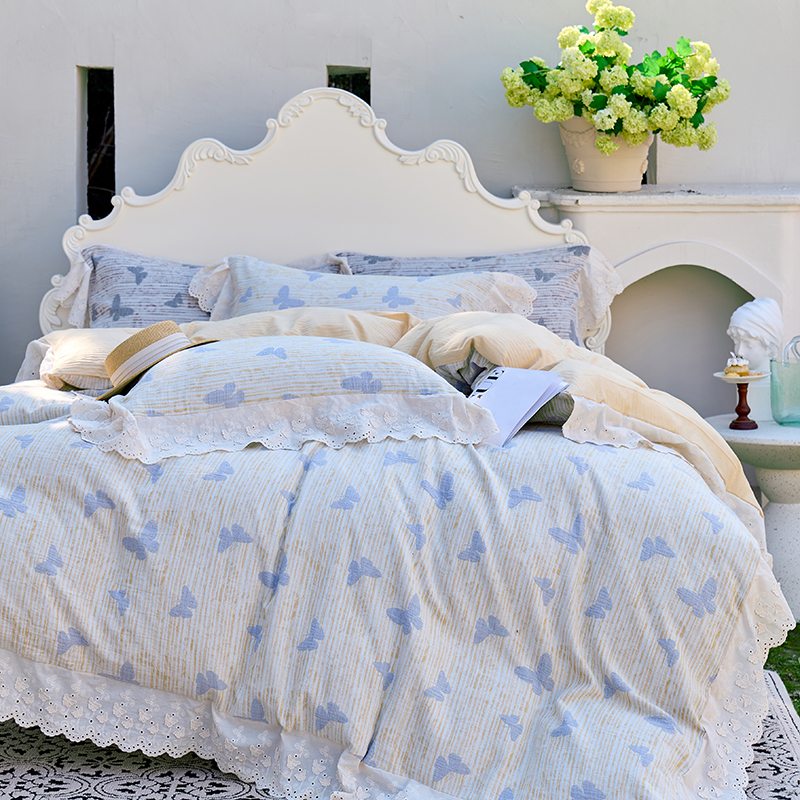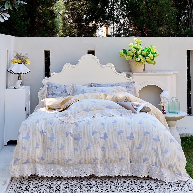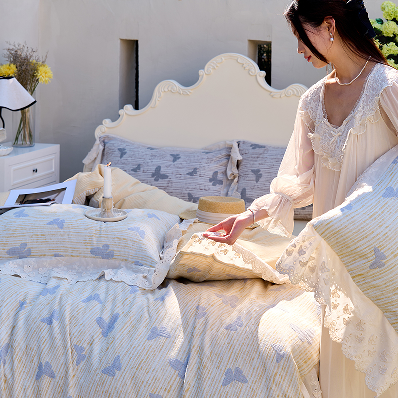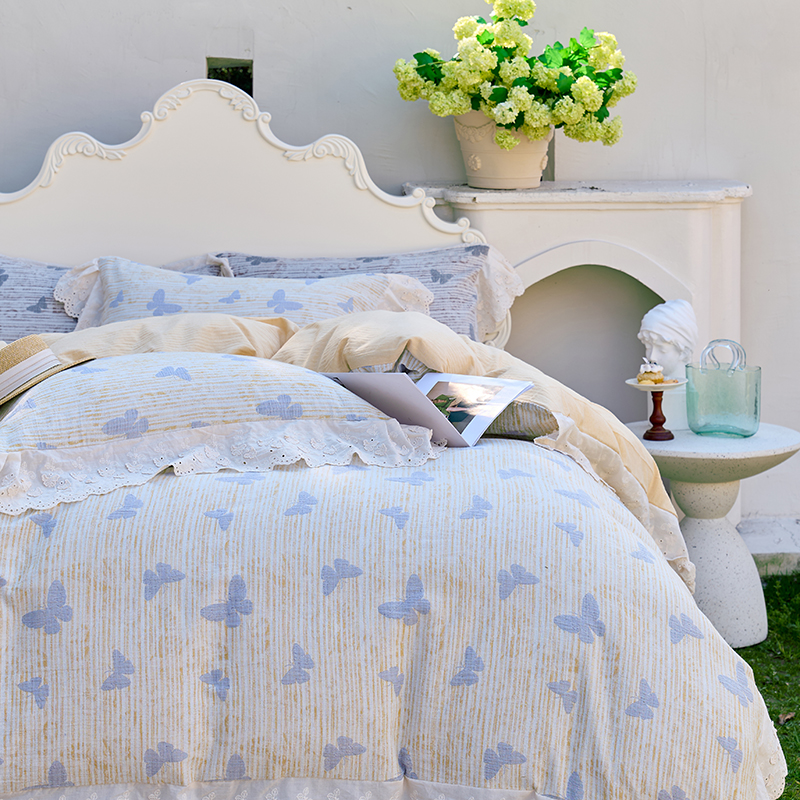 商品名称:久典家居 2025新款60S全棉纯棉色织三层纱空气层大提花四件套-蝶梦 蝶梦黄