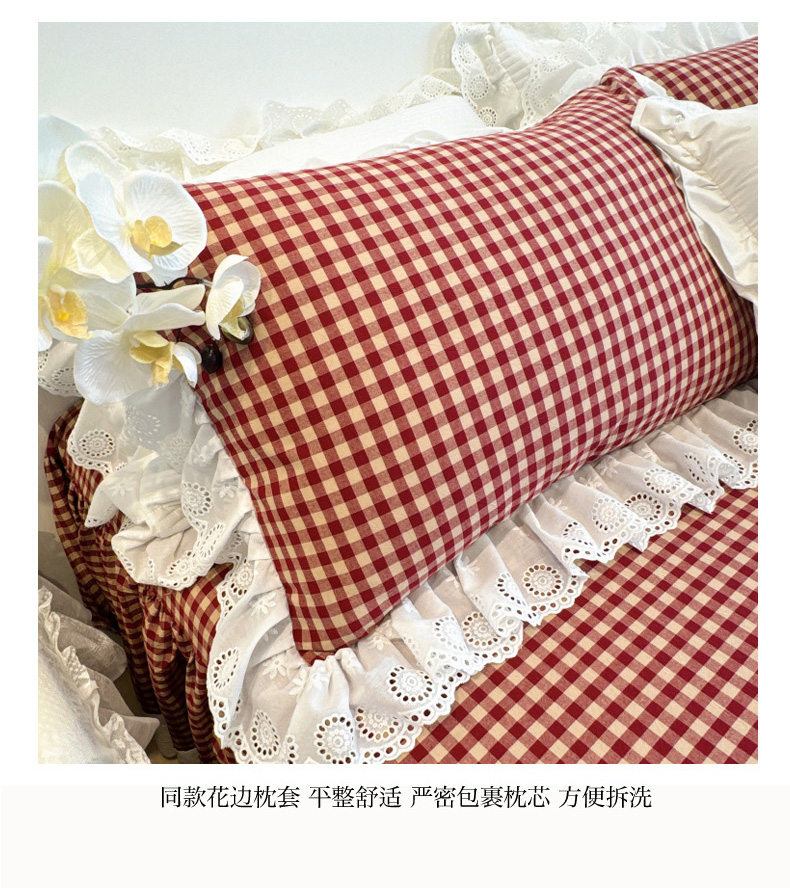 (总)胜权家纺 2025春夏新品全棉法式复古色织水洗棉床裙四件套系列,小红格,小黑格,米咖格,中绿格,丹宁蓝,亚麻灰
