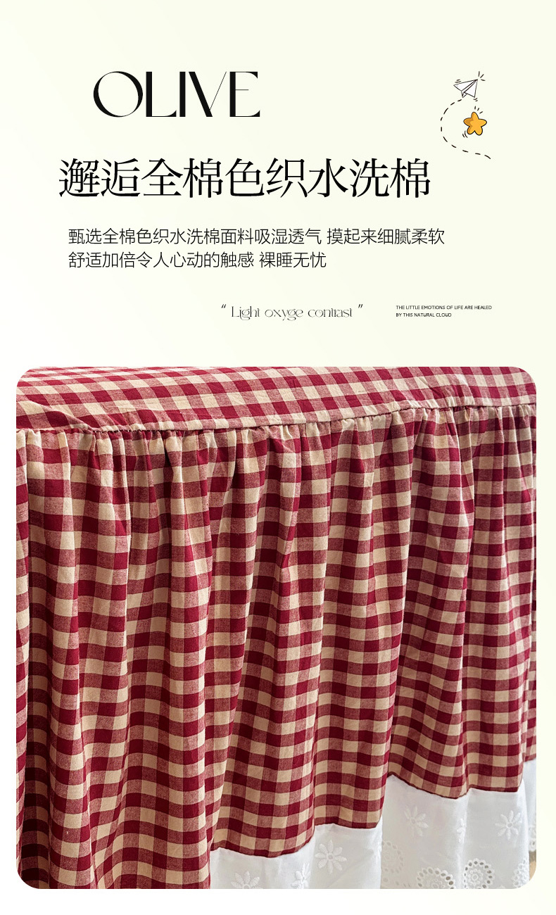 (总)胜权家纺 2025春夏新品全棉法式复古色织水洗棉床裙单品系列,小红格,小黑格,米咖格,中绿格,丹宁蓝,亚麻灰