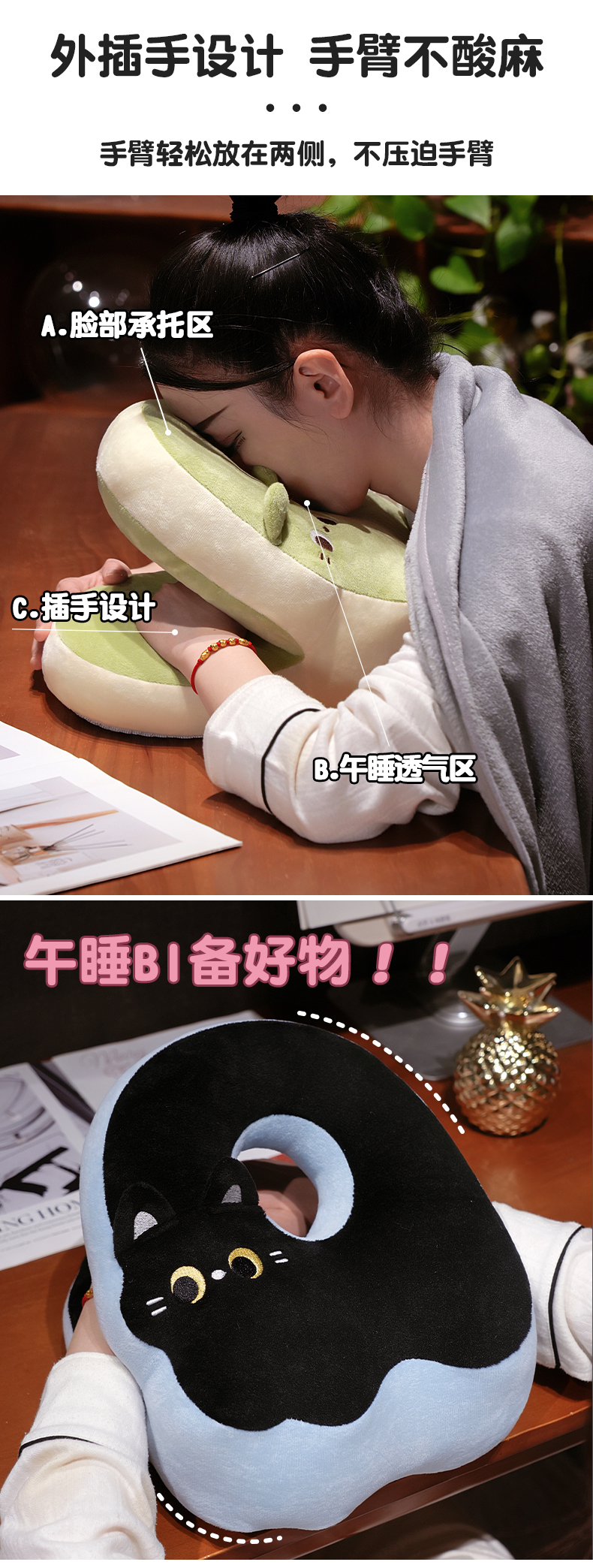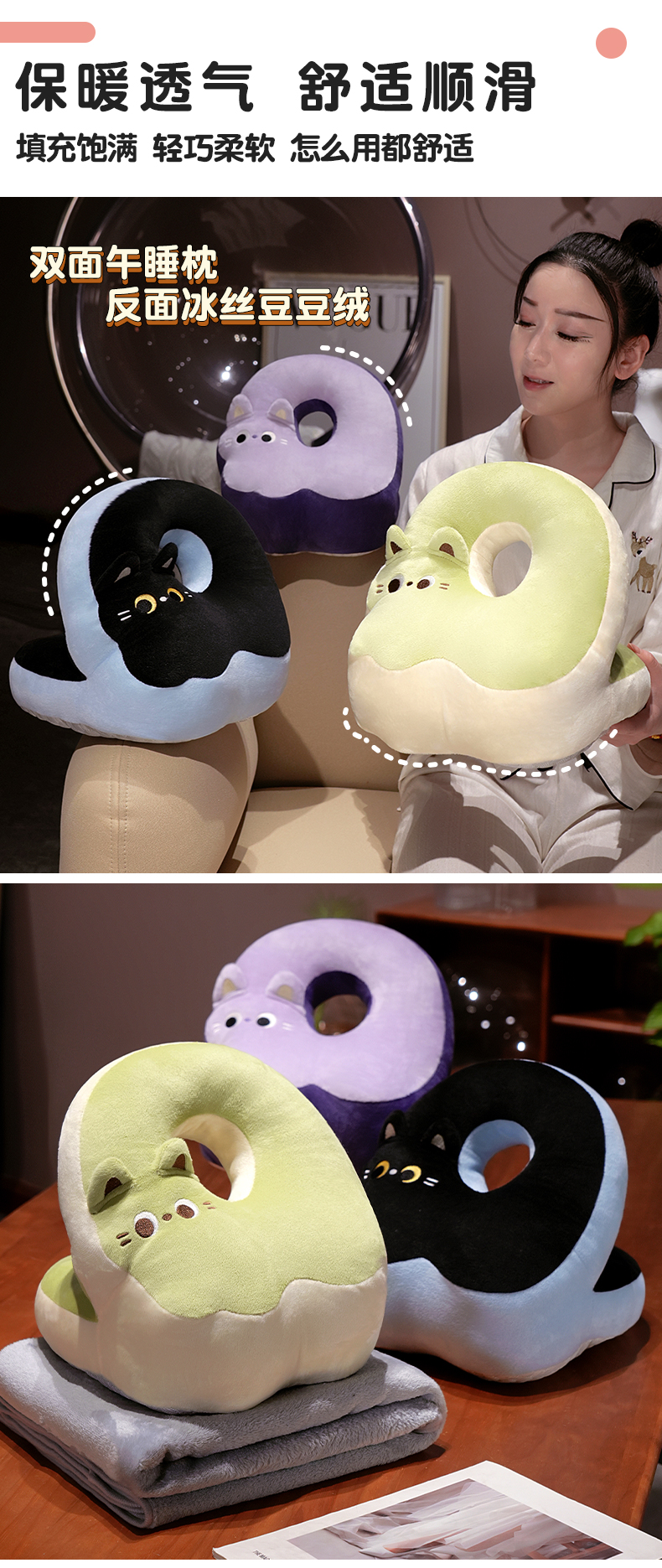 商品名称:仟亿莱 2025新款翘尾猫冰丝豆豆双面午睡枕 双面芋泥紫喵
