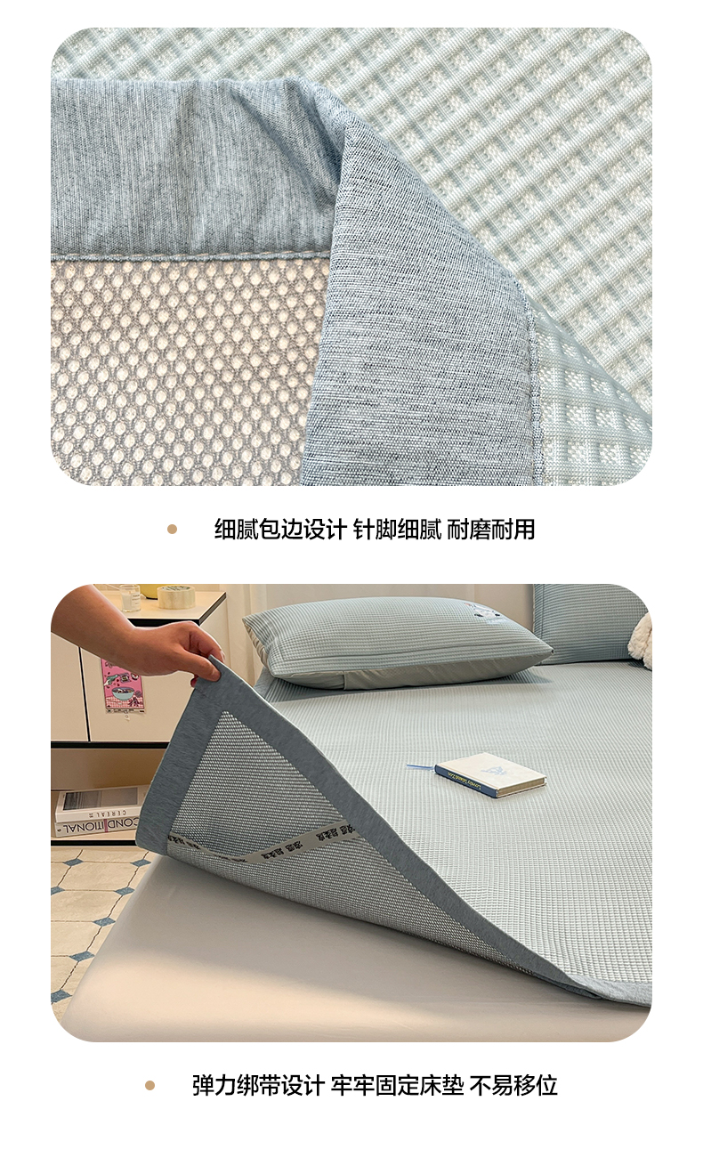 雅居纺家纺 2025新款A类加厚三明治底华夫格绣花凉感席 床席款-乐趣小狗
