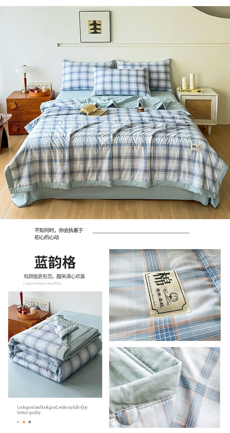商品名称:优尚家纺 2025新款水洗棉棉花夏被 无印风系列-蓝小格
