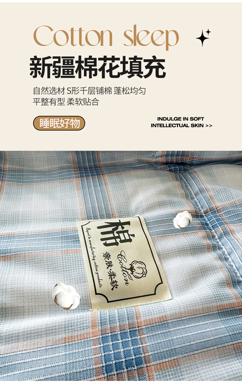 优尚家纺 2025新款水洗棉棉花夏被 无印风系列-蓝小格