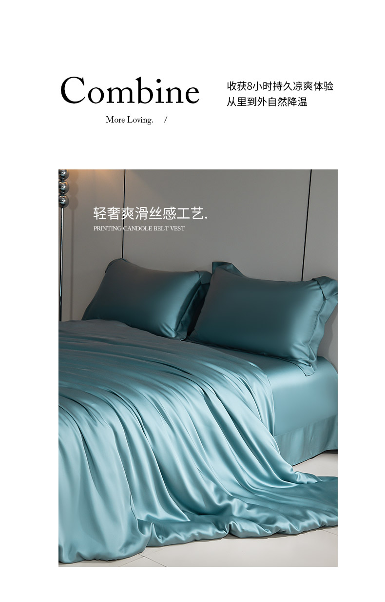 (总)简爱 2025新款水洗真丝夏被四件套,宝石蓝,冰清绿,粉玉,贵族白,孔雀绿,浪漫紫,深空灰,天空蓝,香槟郁,幽心兰