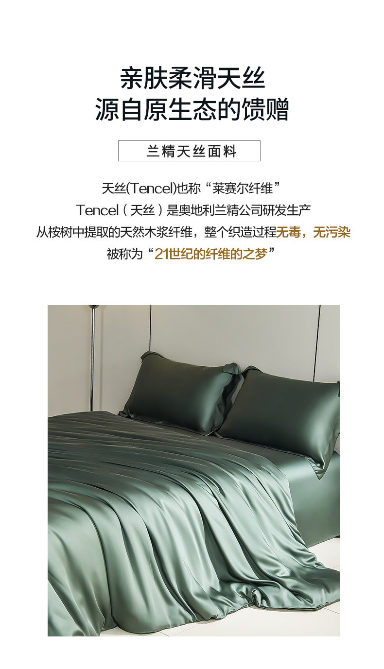商品名称:简爱家纺 2025亲肤舒适60s兰精天丝四件套【可授权】 油绿