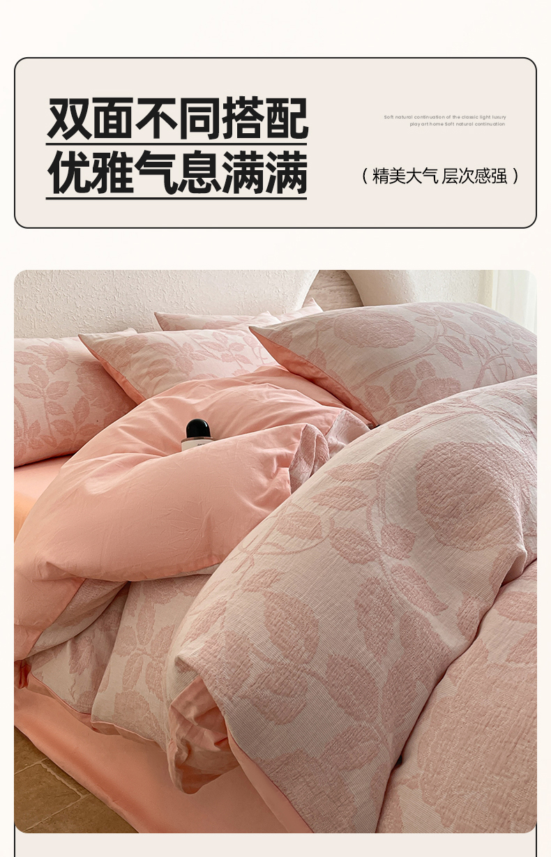 当前位置: 91家纺网 > 商品网购 > 床品套件 > 四件套 > 全棉普通四件套 > 拼社2025新款全棉色织水洗三层纱提花纯棉四件套全棉单被套【提供买家秀】 望月-粉