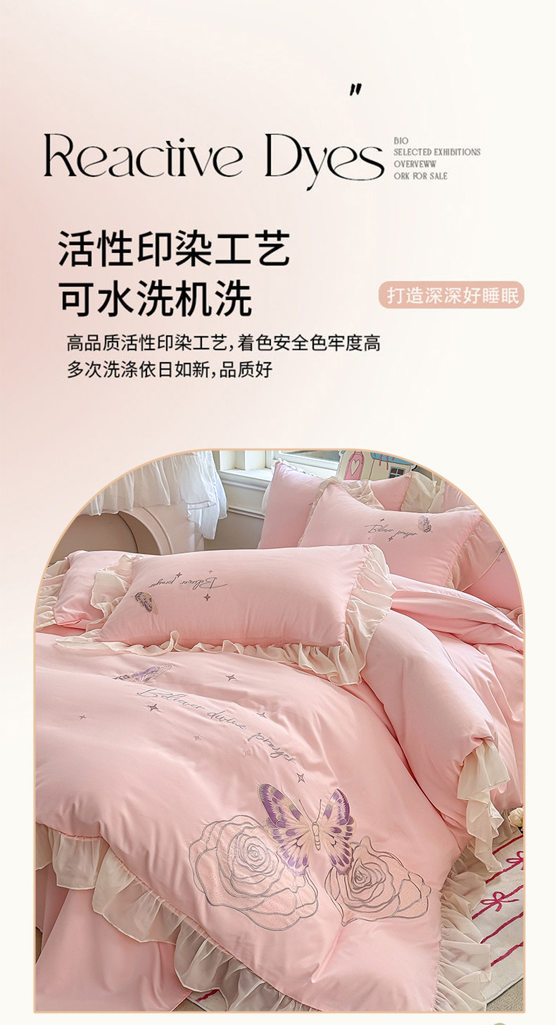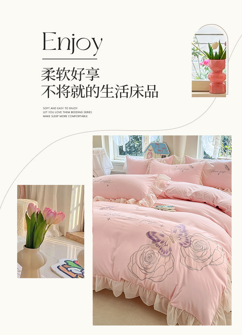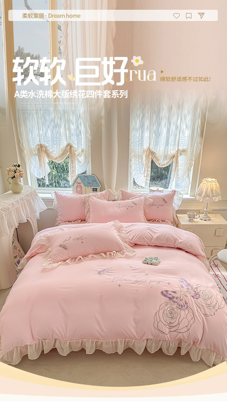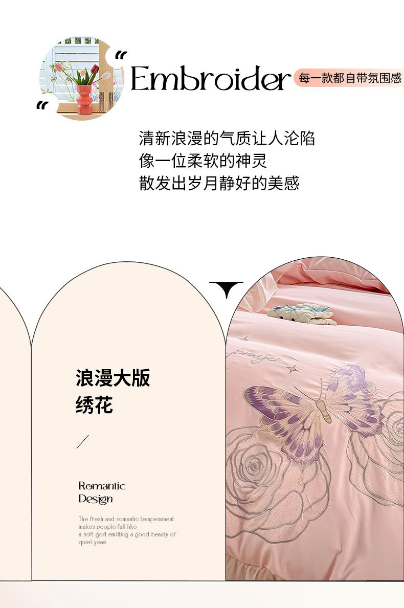 当前位置: 91家纺网 > 商品网购 > 床品套件 > 四件套 > 其它四件套 > 凯美家居 2025新款A类水洗棉大版绣花四件套系列-蝶恋花 蝶恋花 粉玉