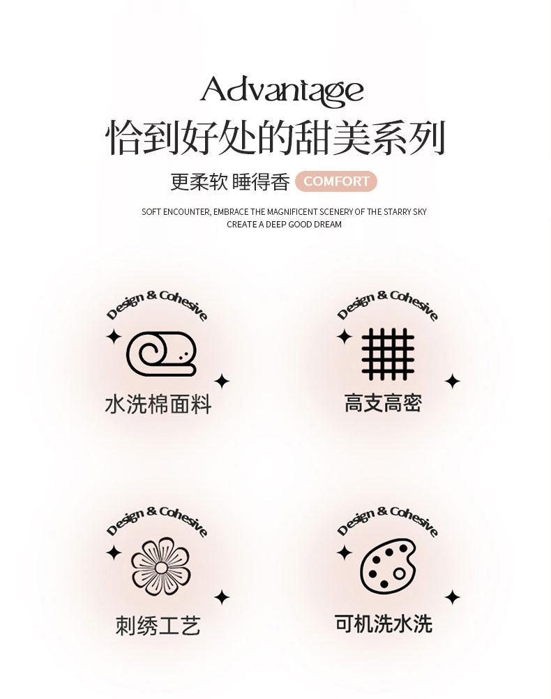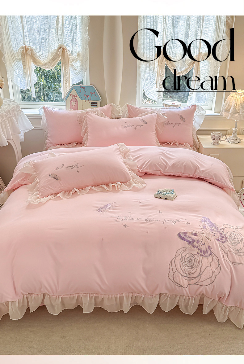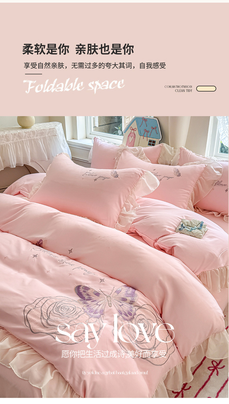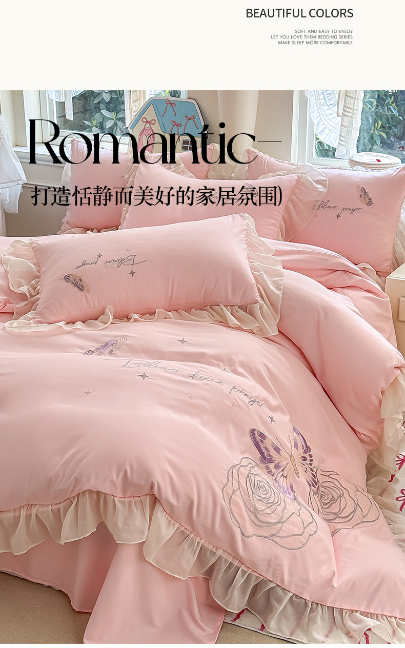 当前位置: 91家纺网 > 商品网购 > 床品套件 > 四件套 > 其它四件套 > 凯美家居 2025新款A类水洗棉大版绣花四件套系列-蝶恋花 蝶恋花 粉玉