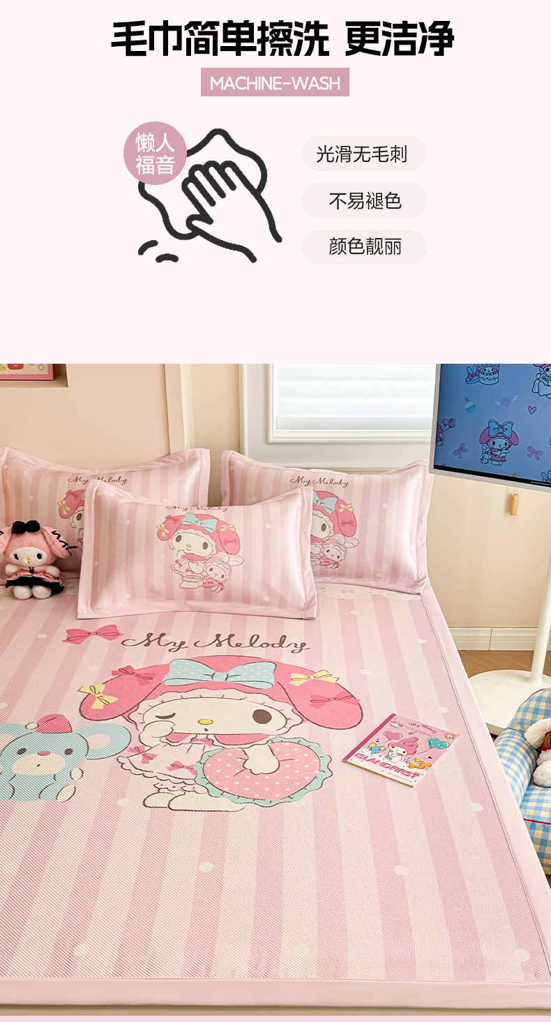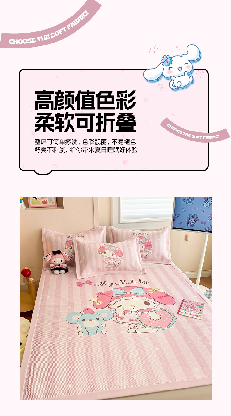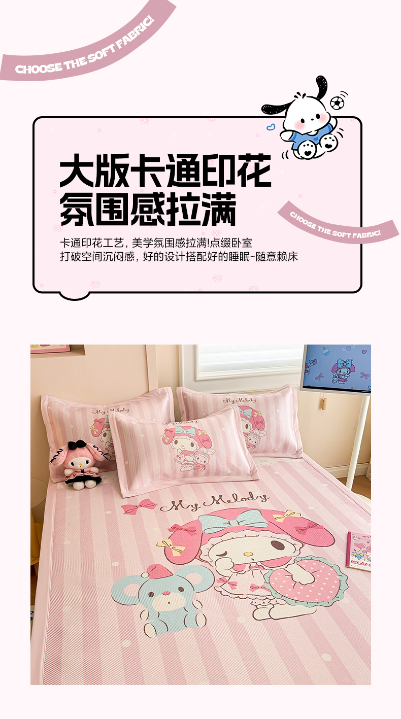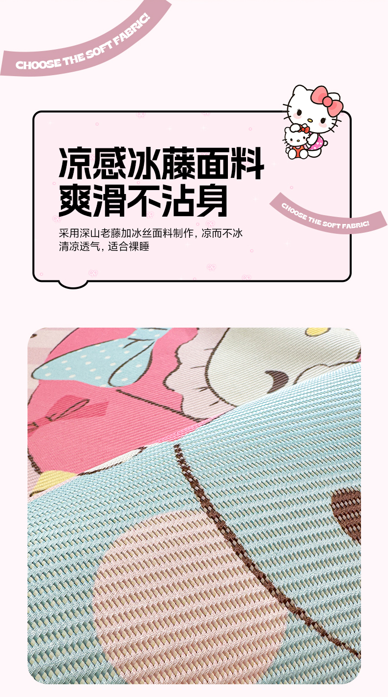 商品名称:蓝邻 2025春夏新款正版三丽鸥600D冰藤大版数码印花凉席-场景一 爱心美乐蒂