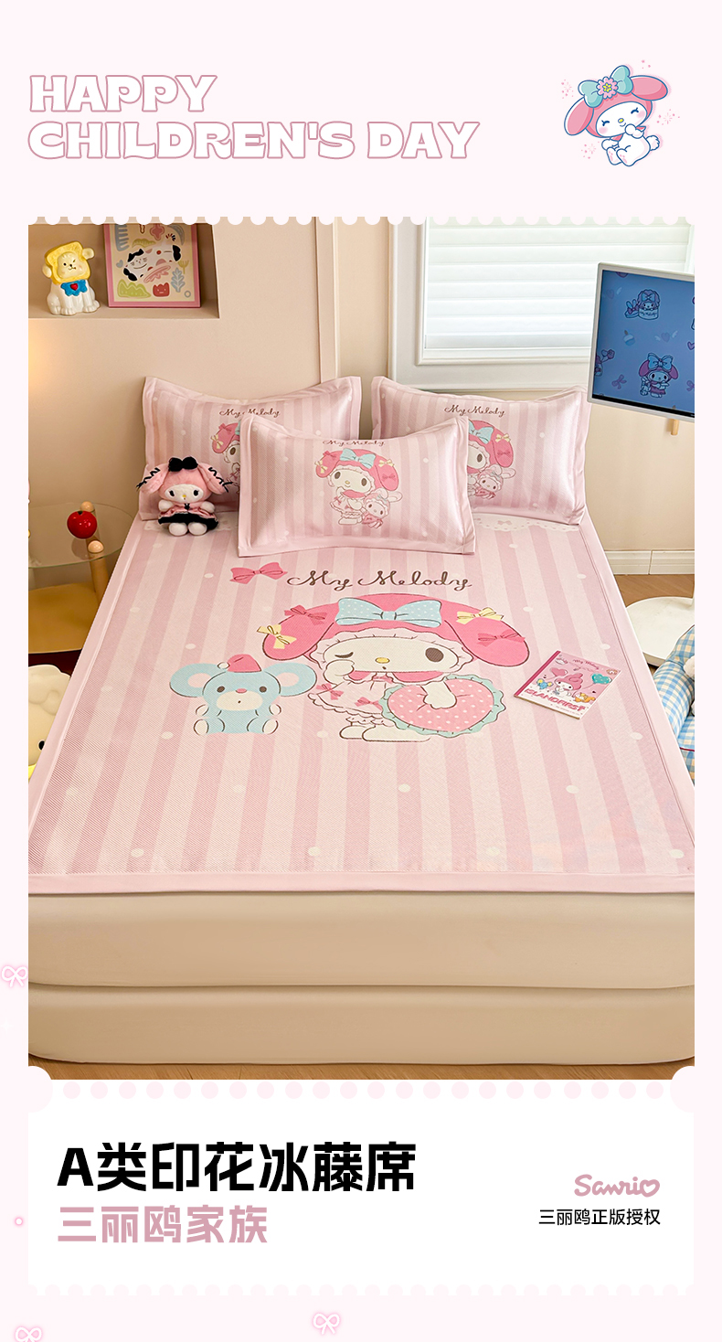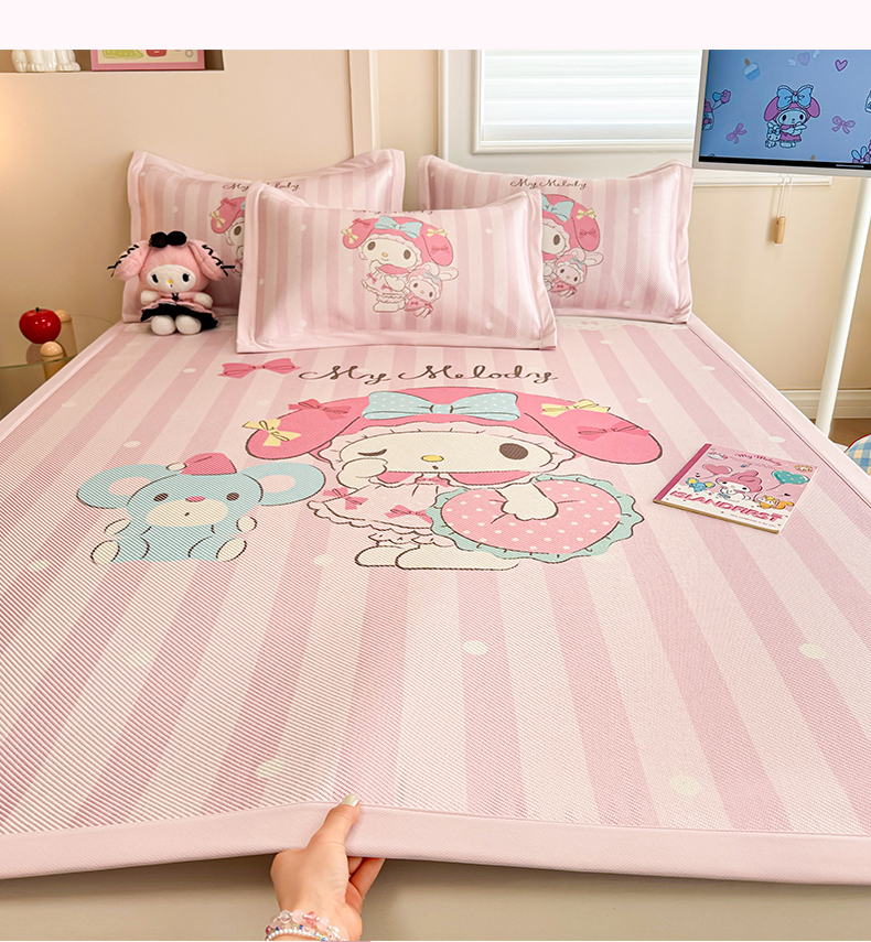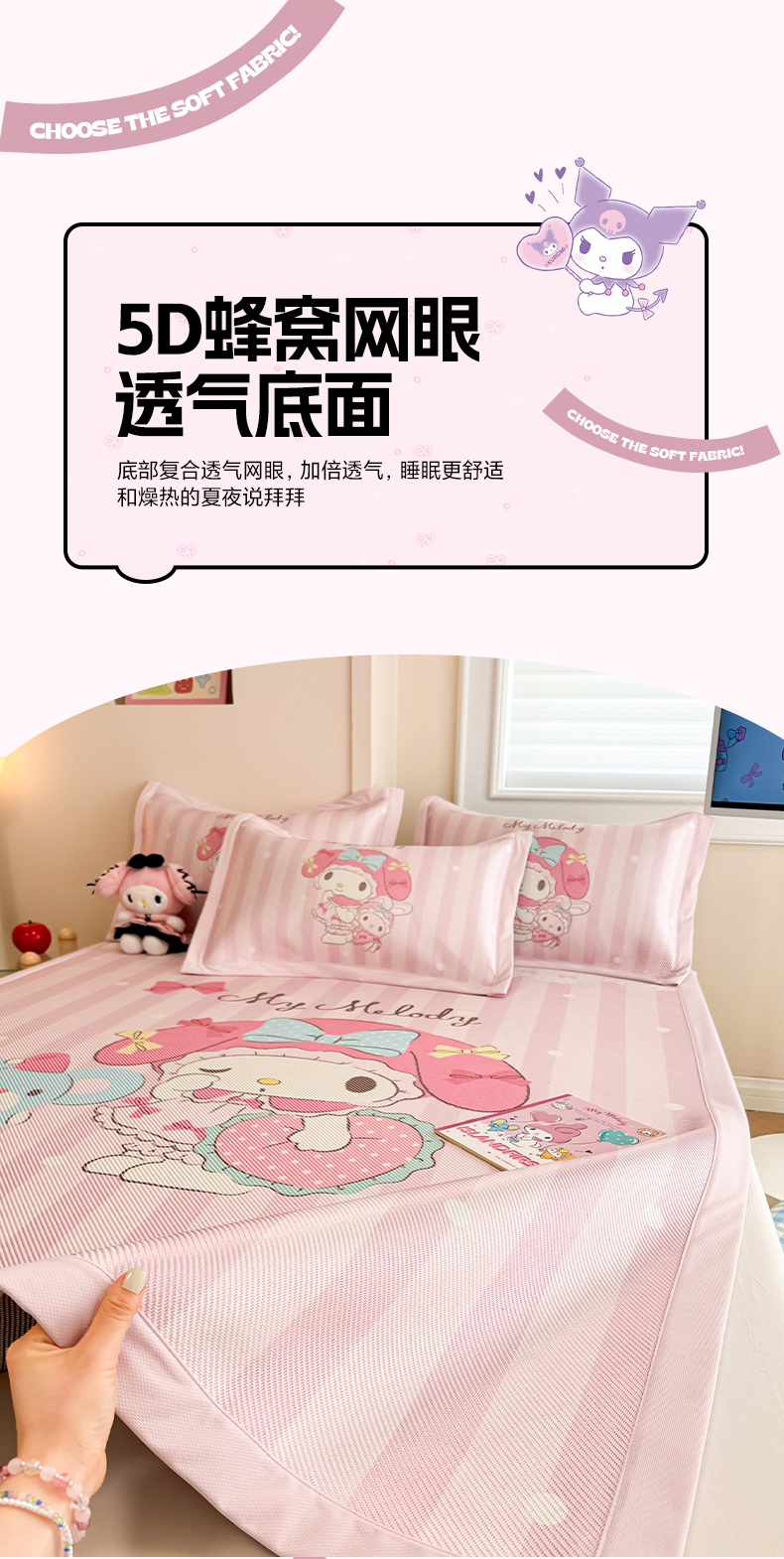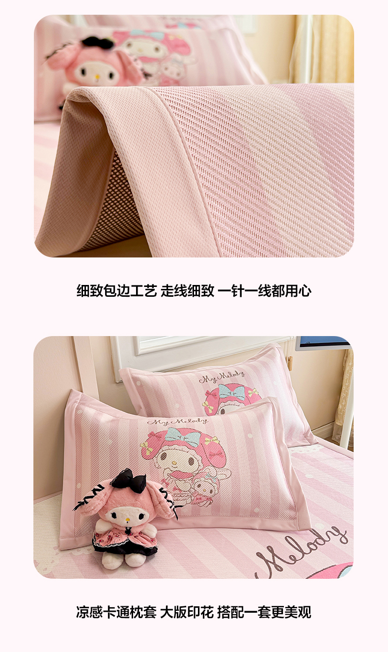 商品名称:蓝邻 2025春夏新款正版三丽鸥600D冰藤大版数码印花凉席-场景一 爱心美乐蒂