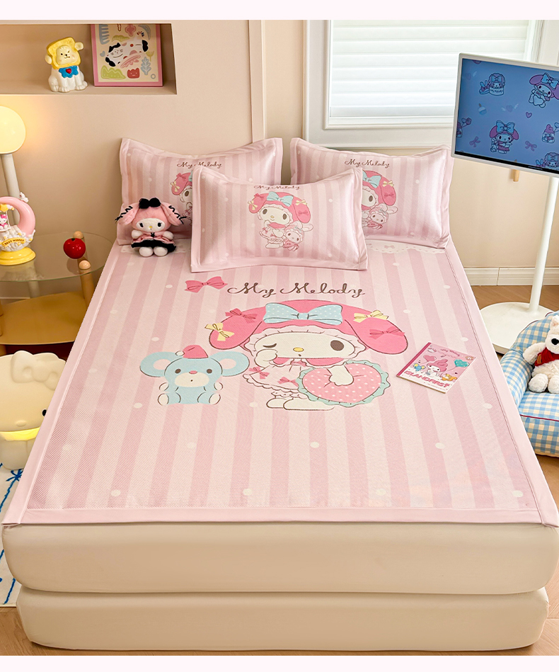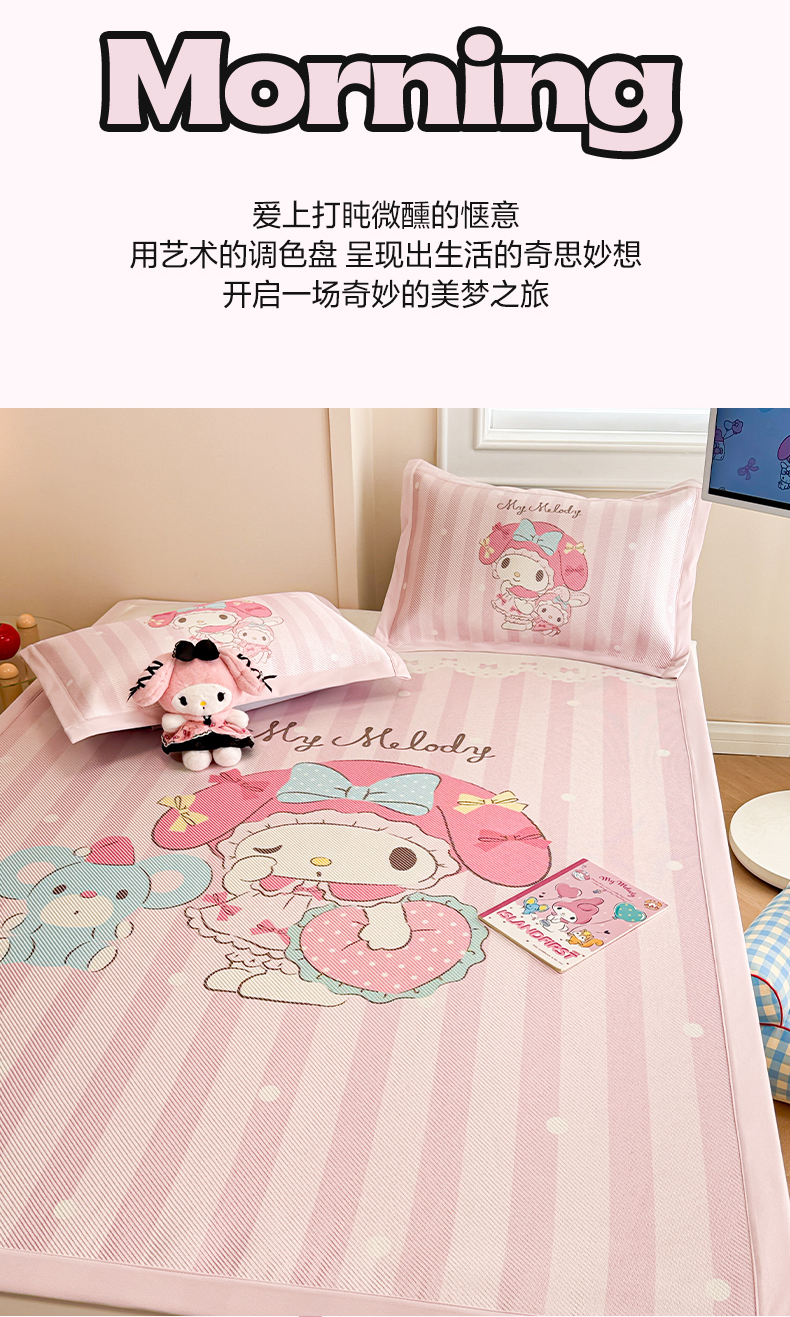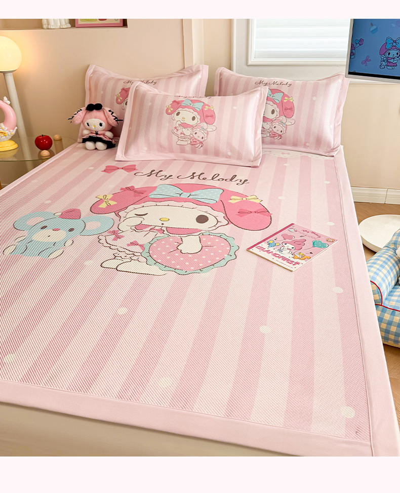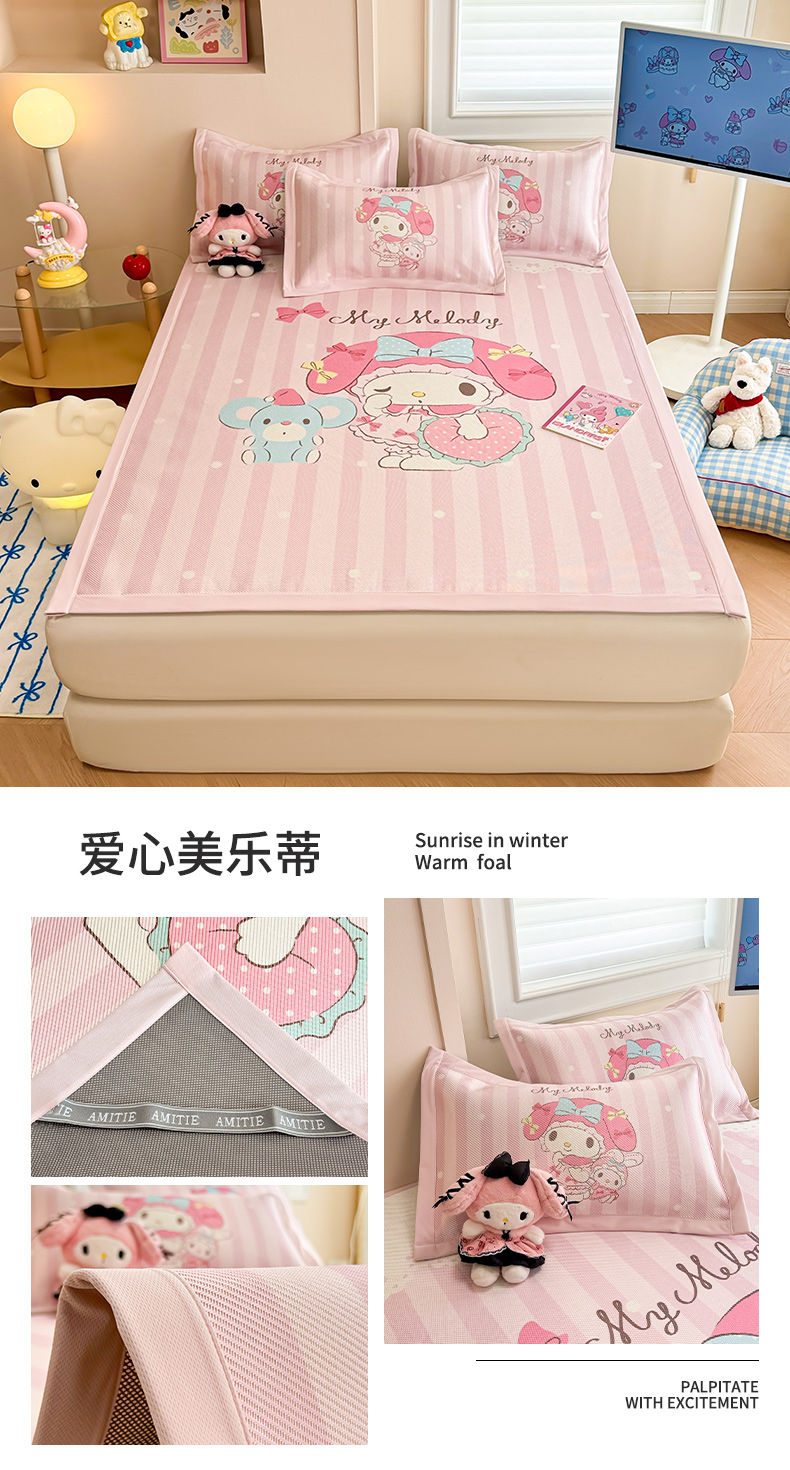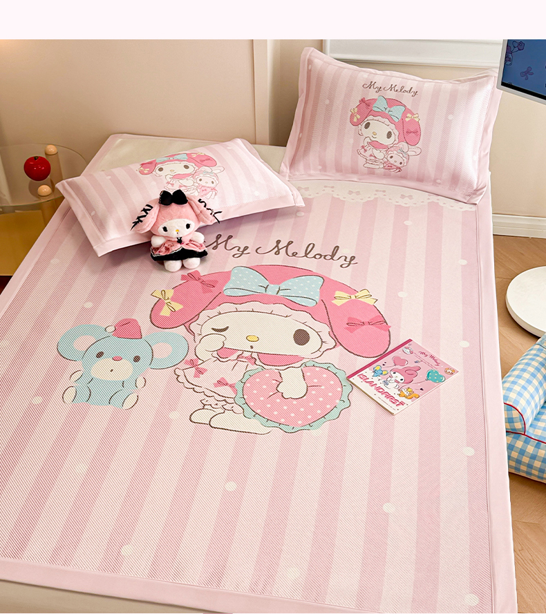 商品名称:蓝邻 2025春夏新款正版三丽鸥600D冰藤大版数码印花凉席-场景一 爱心美乐蒂