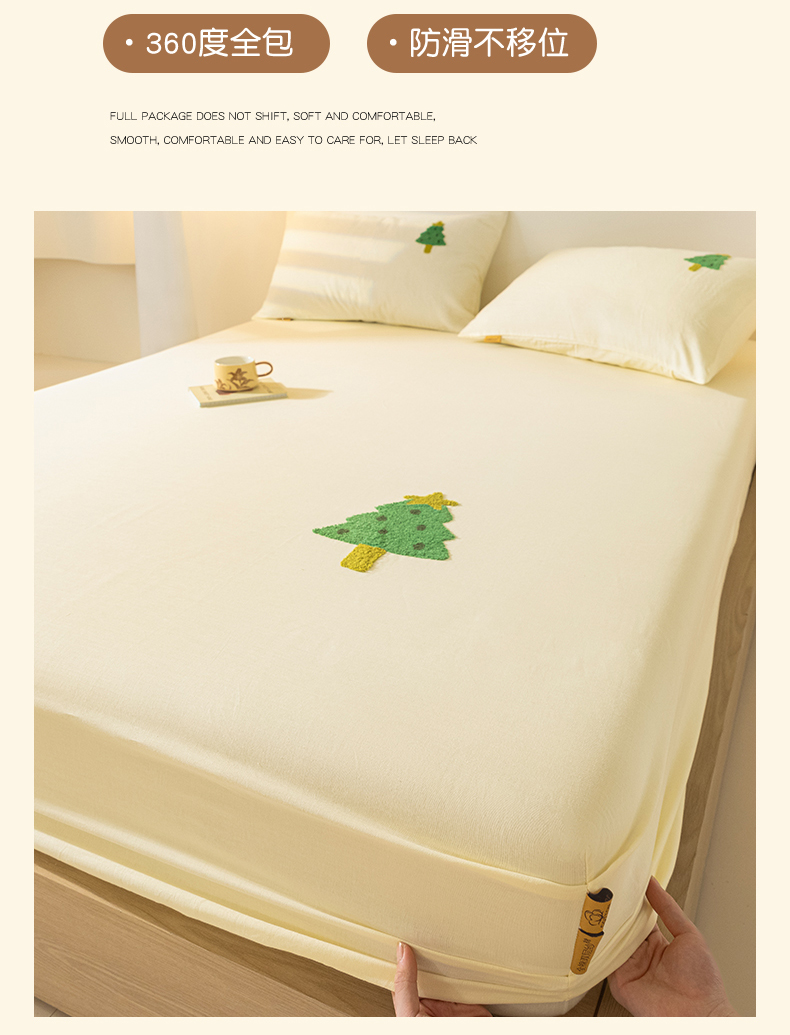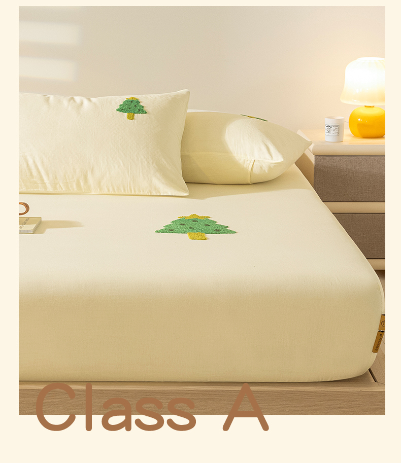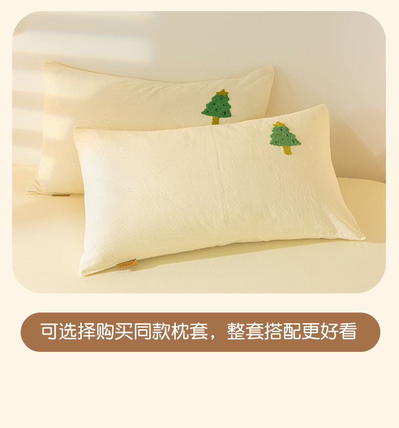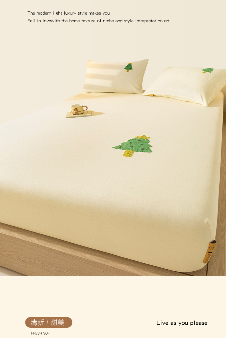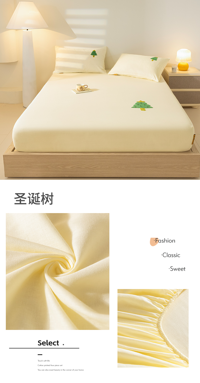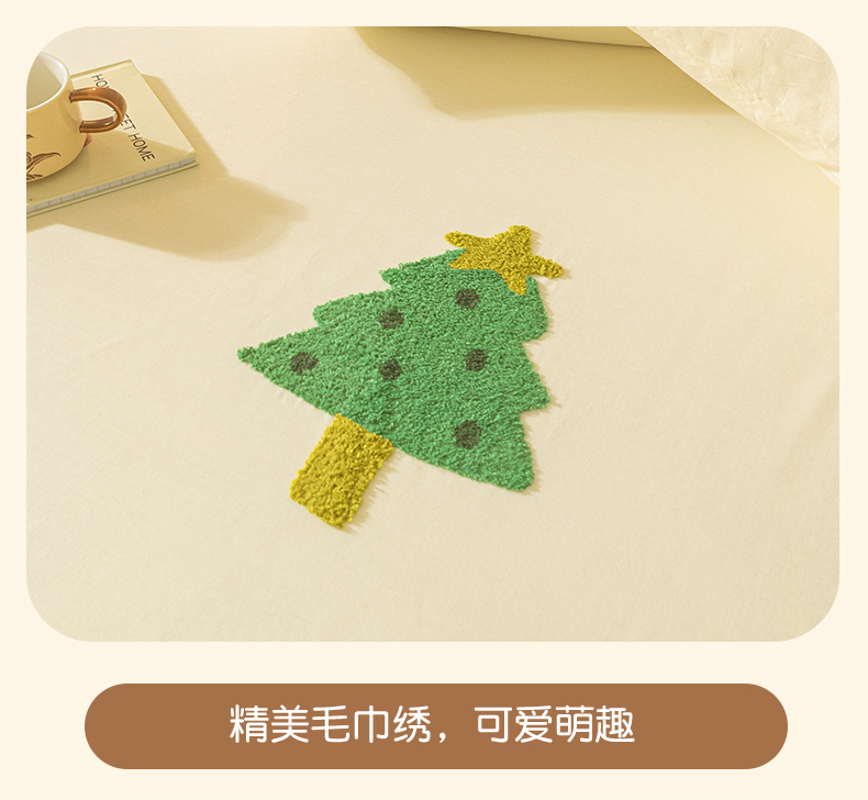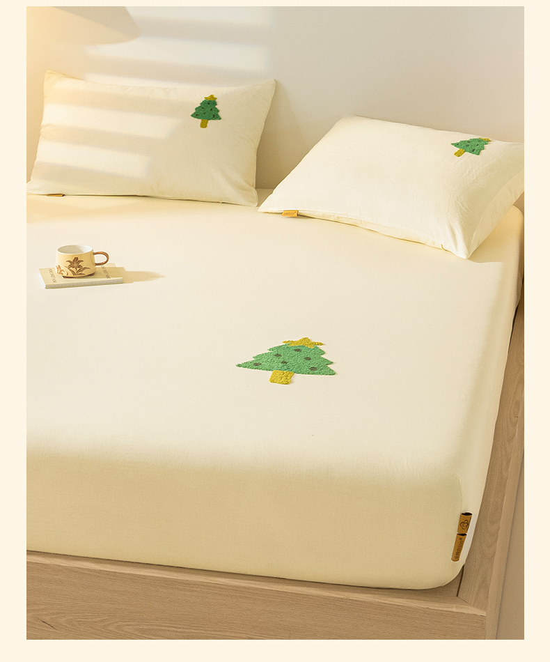 商品名称:居眠 2025新款全棉纯棉云感皱皱纱毛巾绣床笠 圣诞树