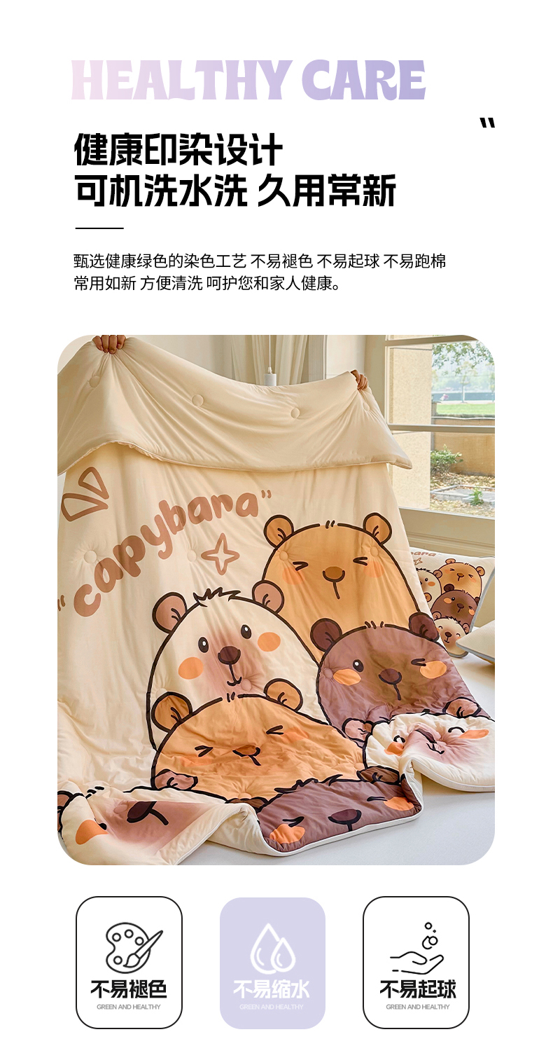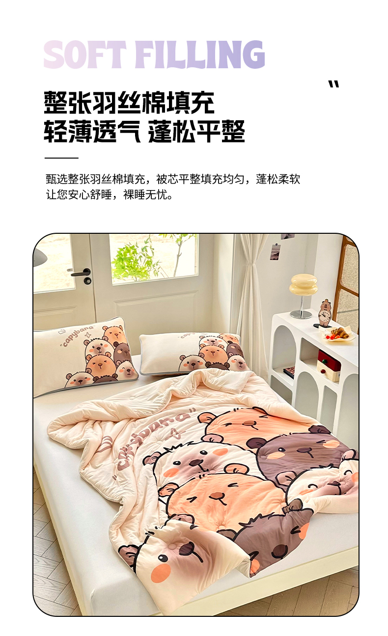 商品名称:蘭菲家纺 2025新款凉感丝卡皮巴拉夏被 豚一家