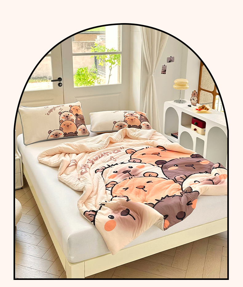 蘭菲家纺 2025新款凉感丝卡皮巴拉夏被 豚一家