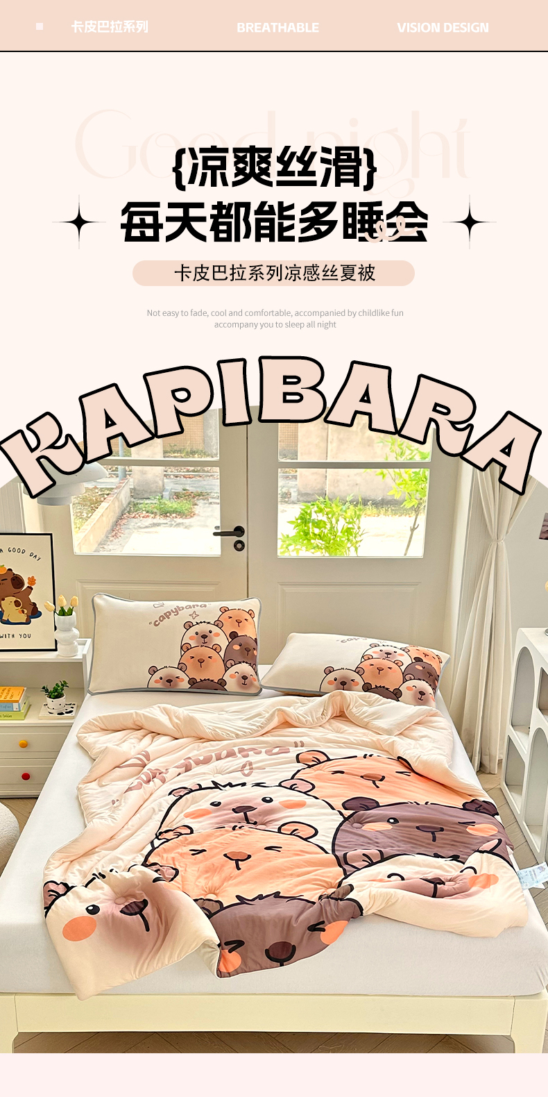 (总)蘭菲家纺 2025新款凉感丝卡皮巴拉夏被,爱滑板,爱皮卡,沉浸式,大美豚,拉不动,拉小鸭,陪伴拉,皮小蛋,皮小萌,豚世界,豚一家,小卡,小奶豚,熊巴拉,征服拉