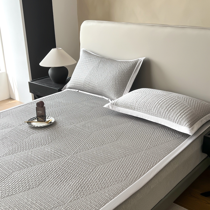 (总)禧禾 2025新款PE高分子A类泡小豆色织提花提花凉席三件套-悠米,悠米-浅灰,悠米-浅咖,悠米-深灰