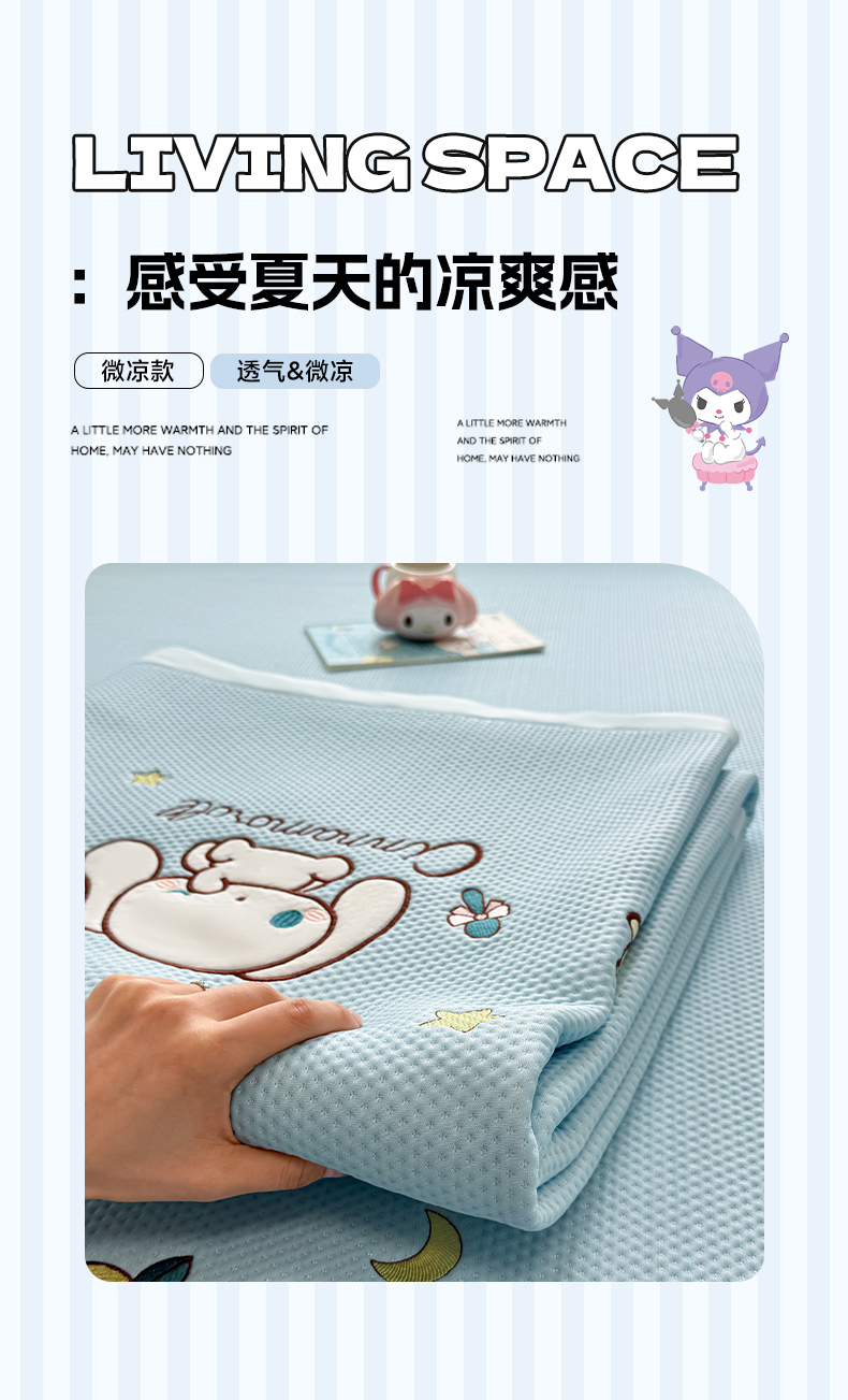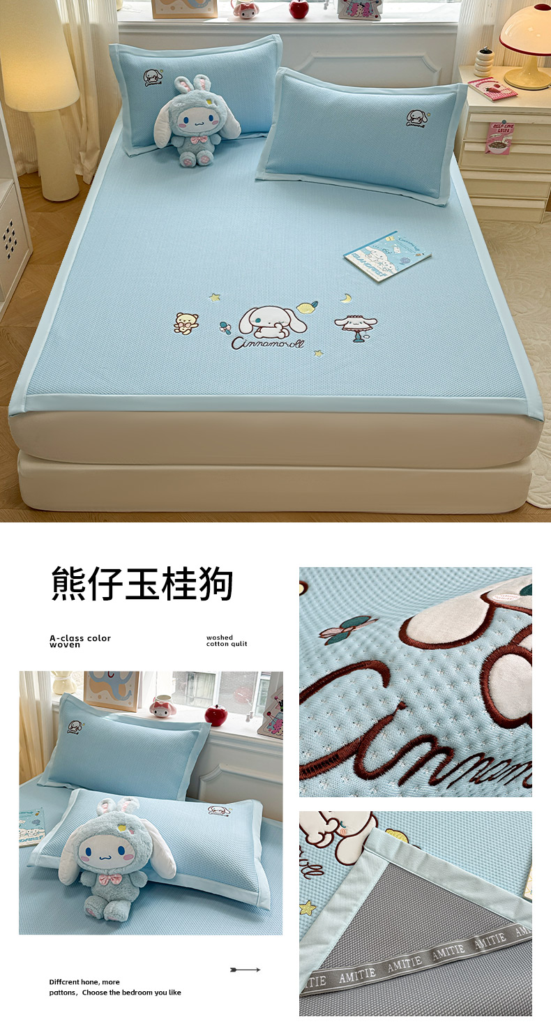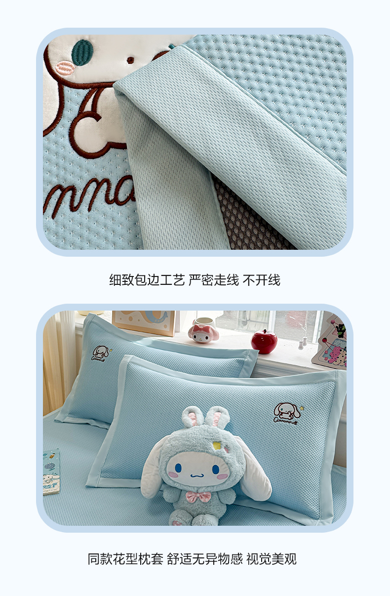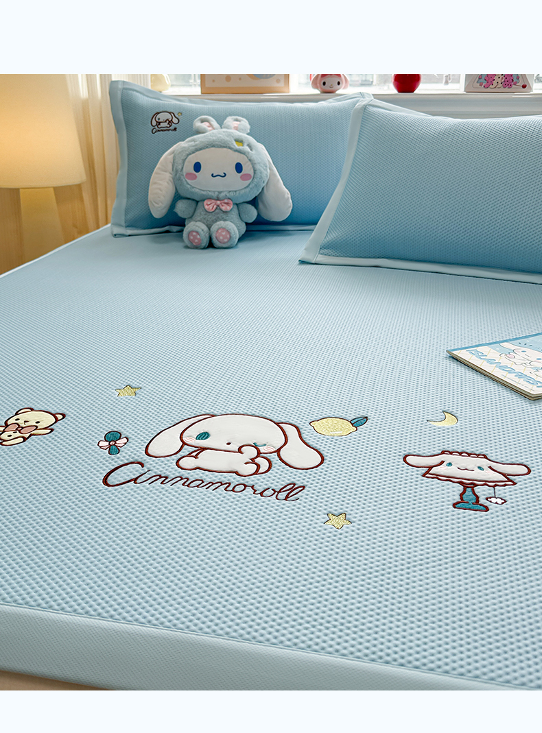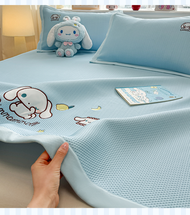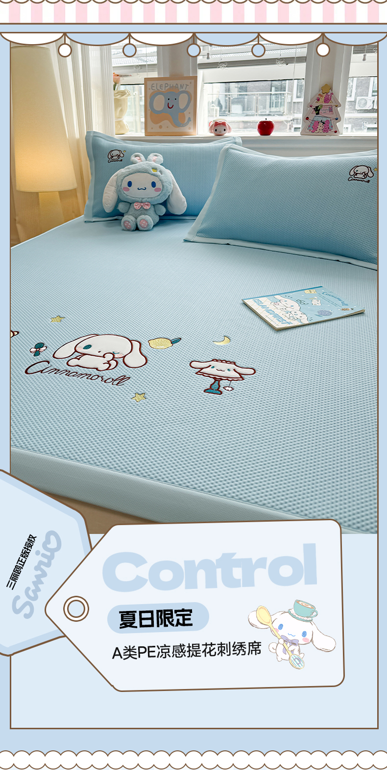 蓝邻家纺 2025年新款PE提花正版三丽鸥刺绣凉席系列-场景二 熊仔玉桂狗