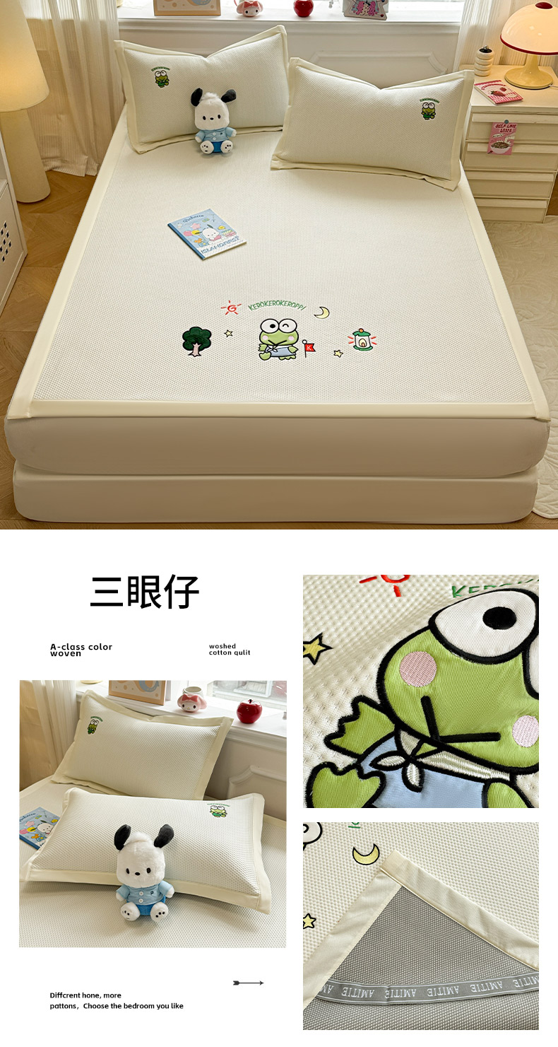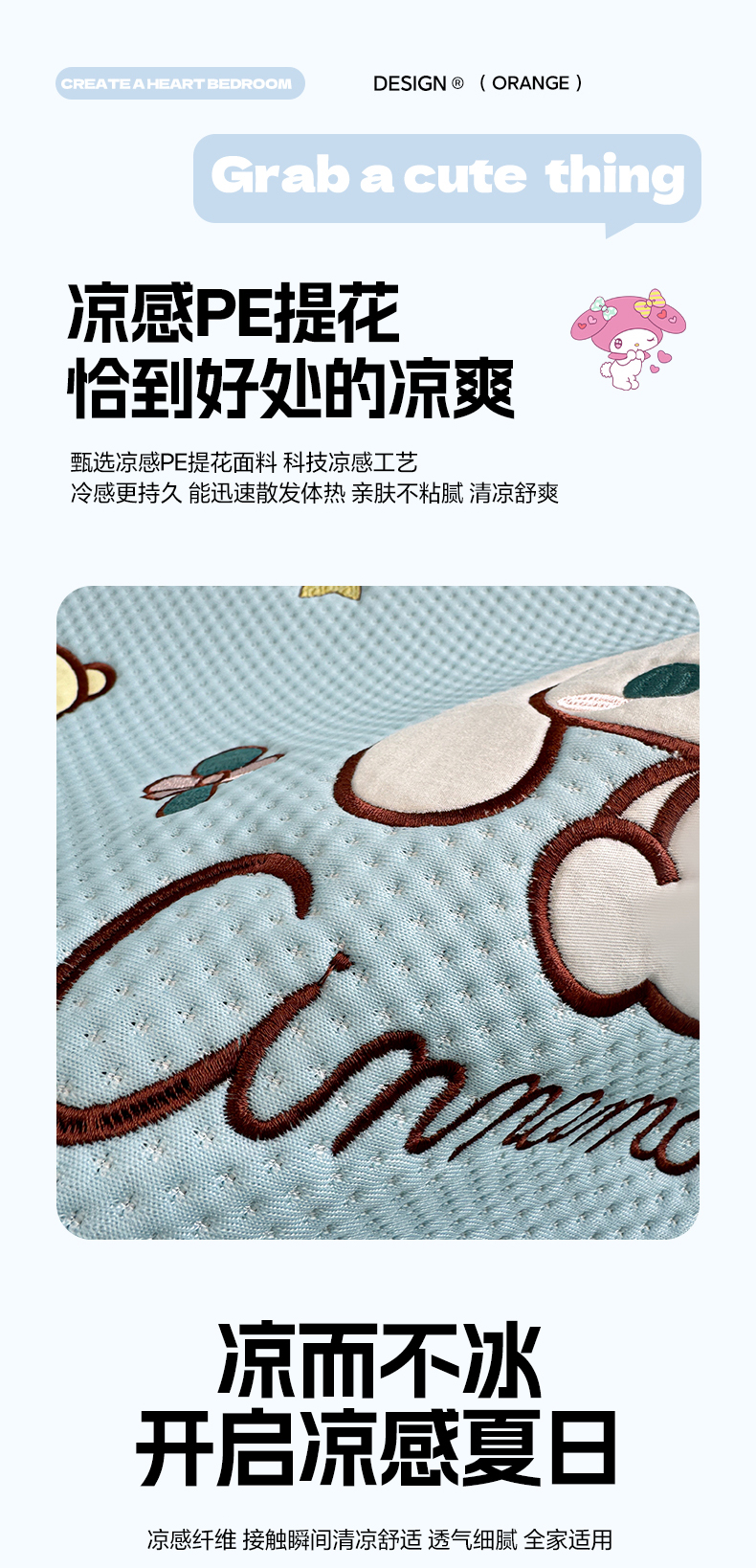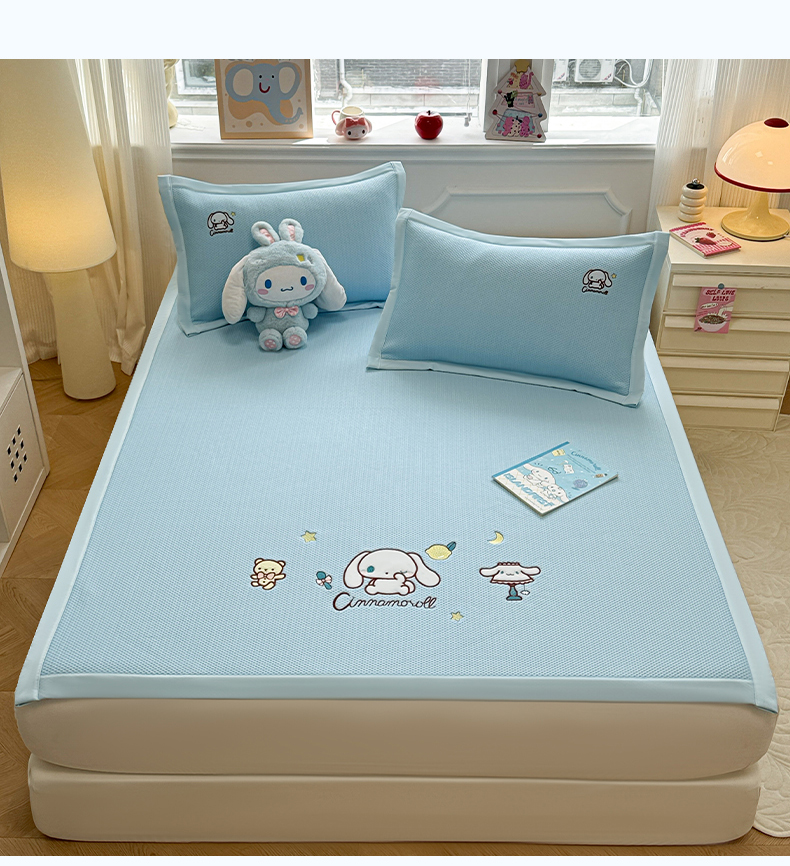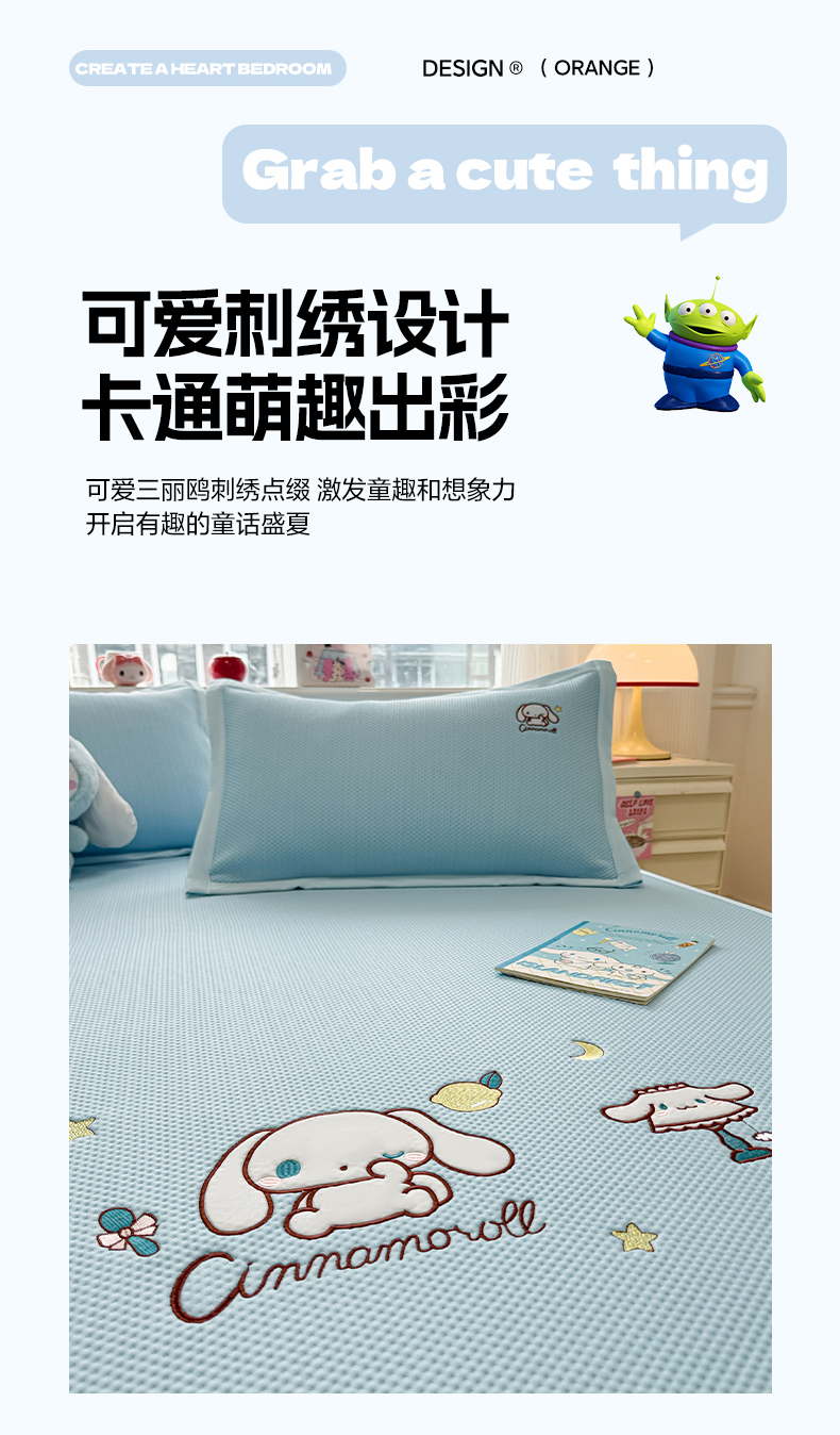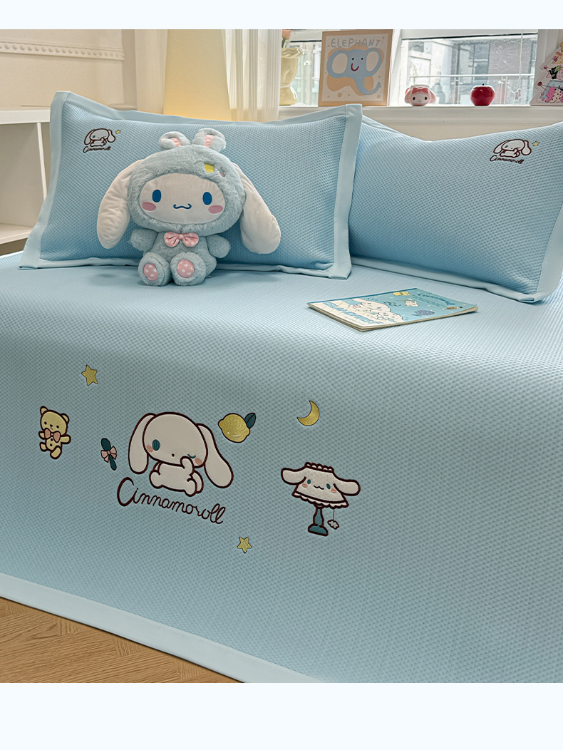 蓝邻家纺 2025年新款PE提花正版三丽鸥刺绣凉席系列-场景二 熊仔玉桂狗