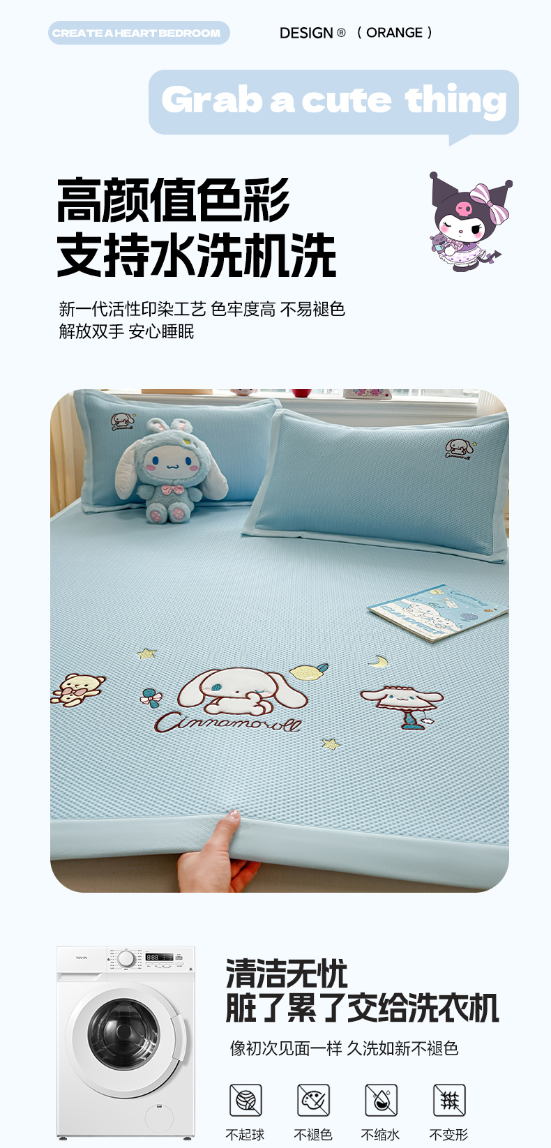 商品名称:蓝邻家纺 2025年新款PE提花正版三丽鸥刺绣凉席系列-场景二 熊仔玉桂狗