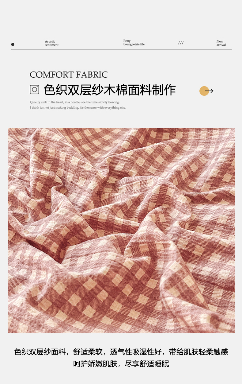 商品名称:(总)优米家纺 2025新款色织双层纱木棉四件套