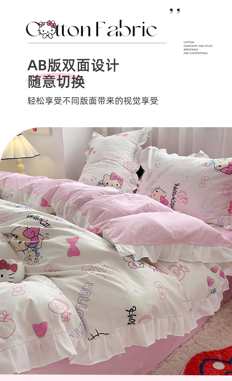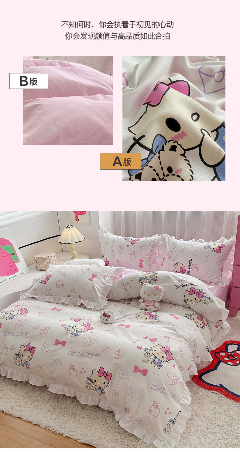 当前位置: 91家纺网 > 商品网购 > 床品套件 > 四件套 > 全棉普通四件套 > 玉元坊 2025新款凯蒂猫全棉库洛米纯棉床裙公主风花边被套四件套三件套(第三批)-花边款 花边款-凯蒂小熊