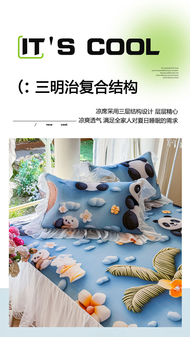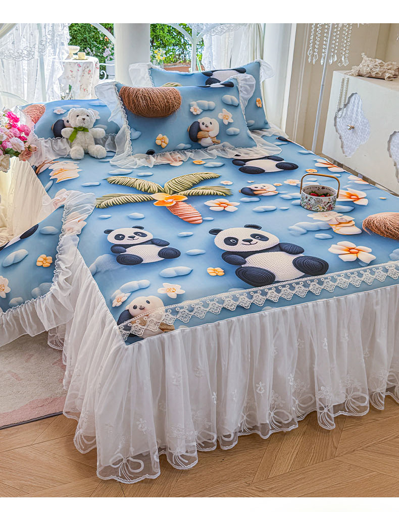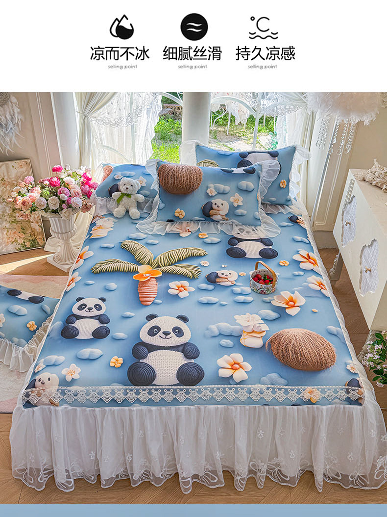 罗艺轩 2025新款冰丝5D印花床裙凉席席子 熊猫世界