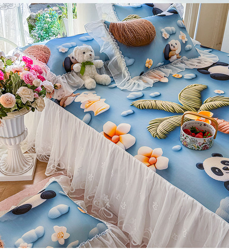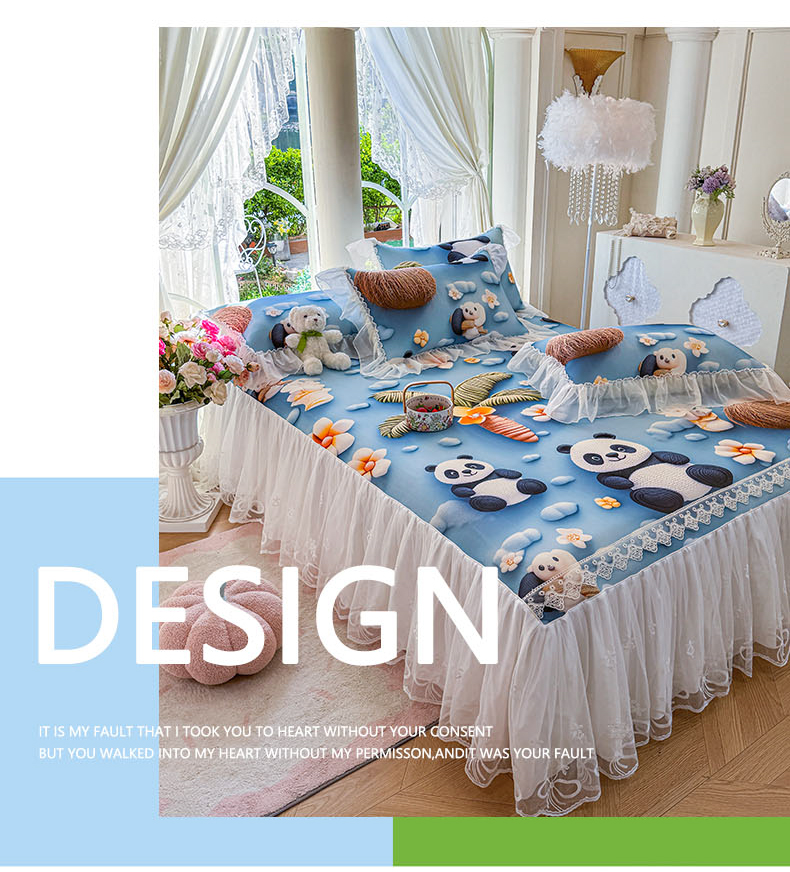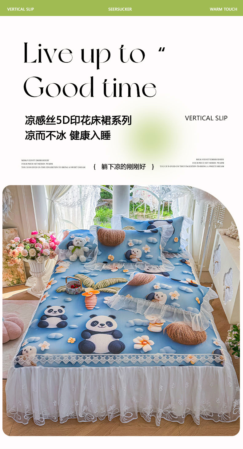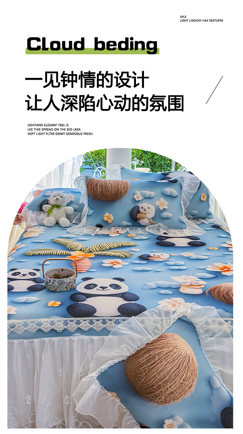 罗艺轩 2025新款冰丝5D印花床裙凉席席子 熊猫世界
