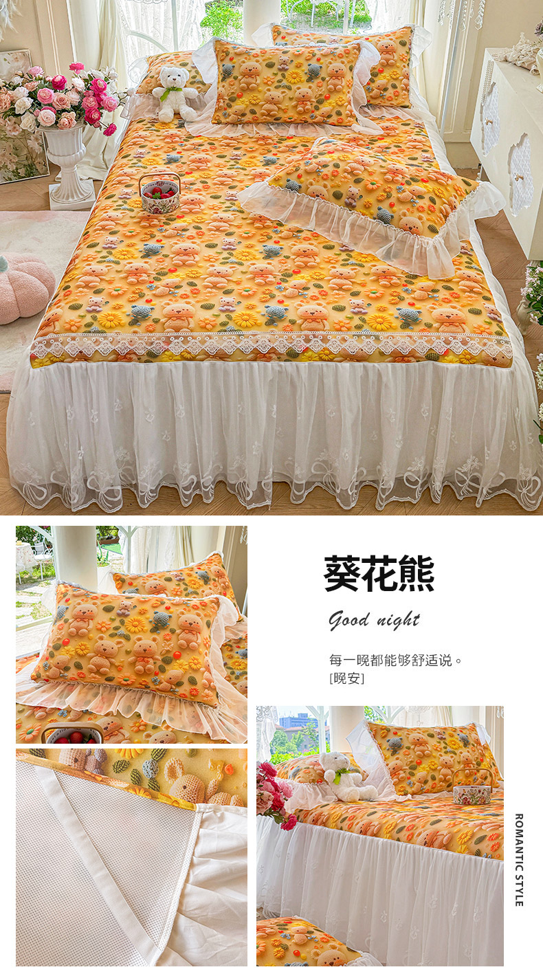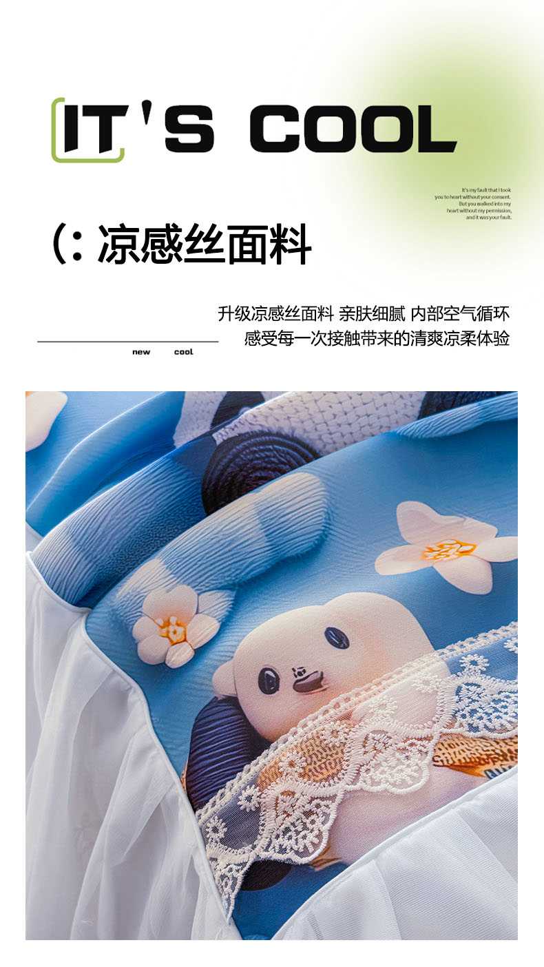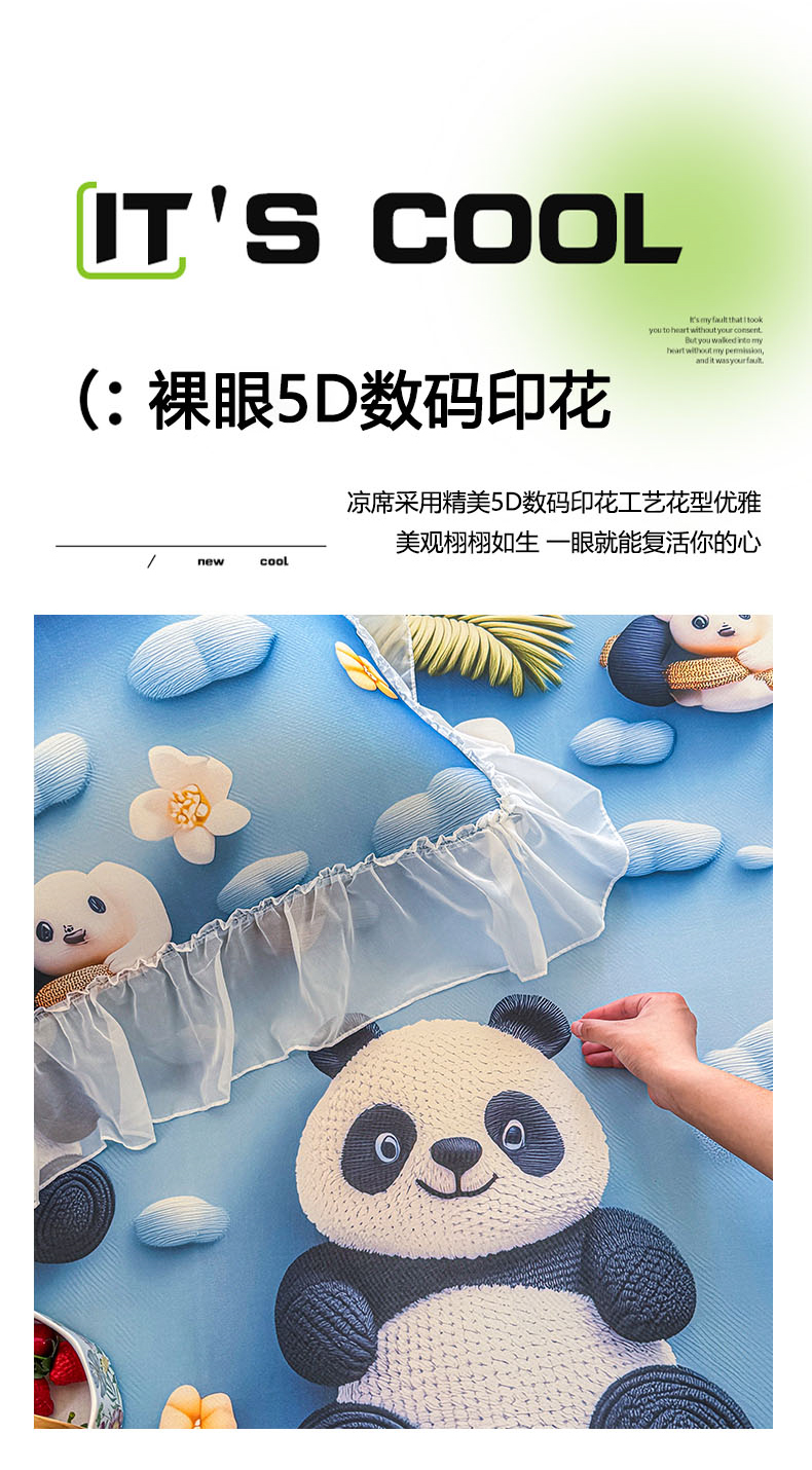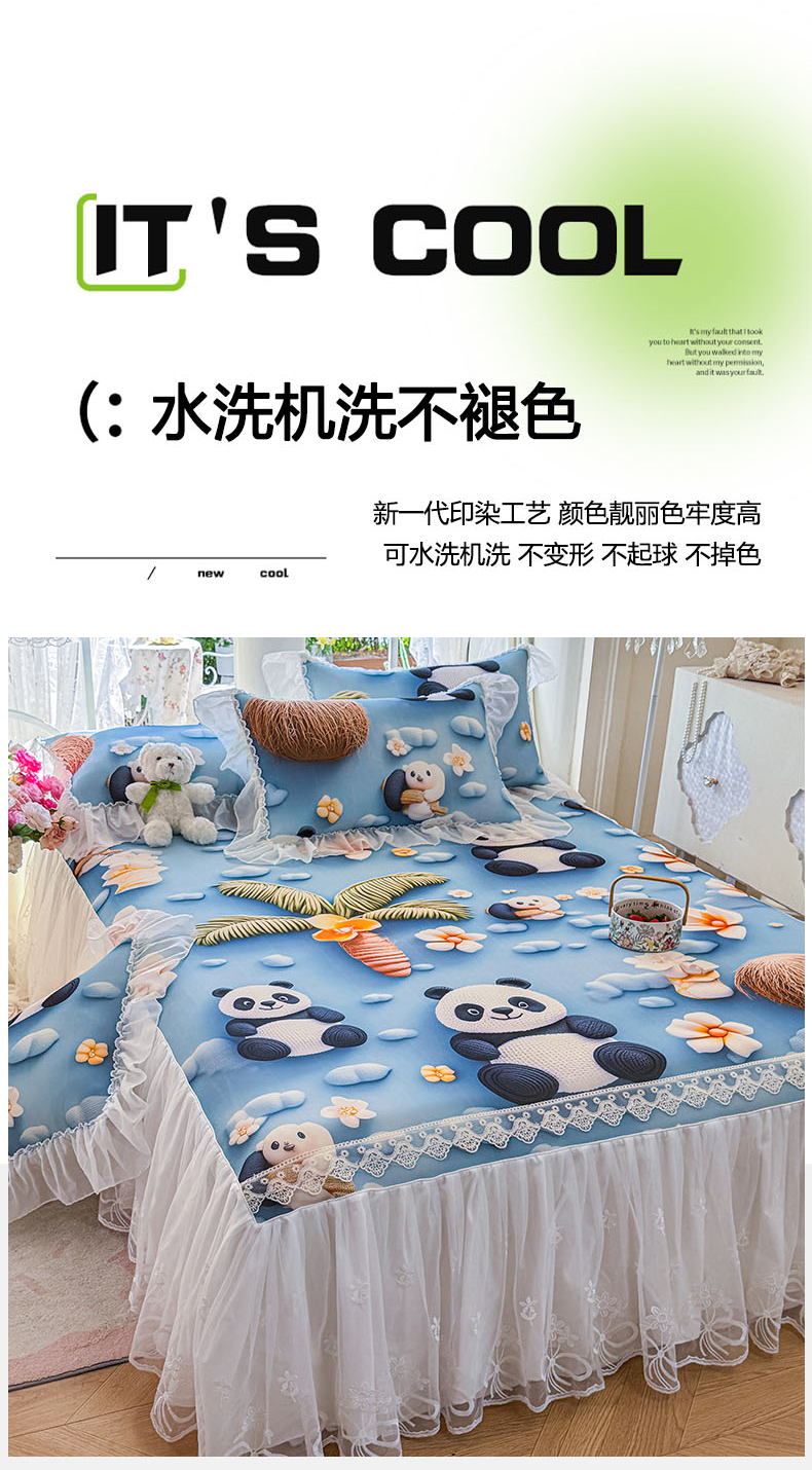 商品名称:罗艺轩 2025新款冰丝5D印花床裙凉席席子 熊猫世界