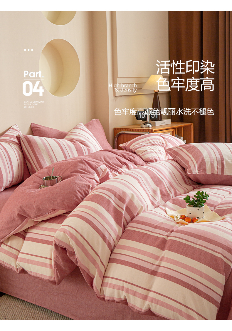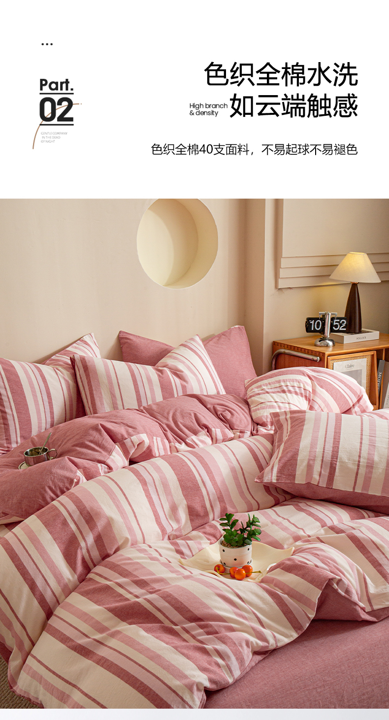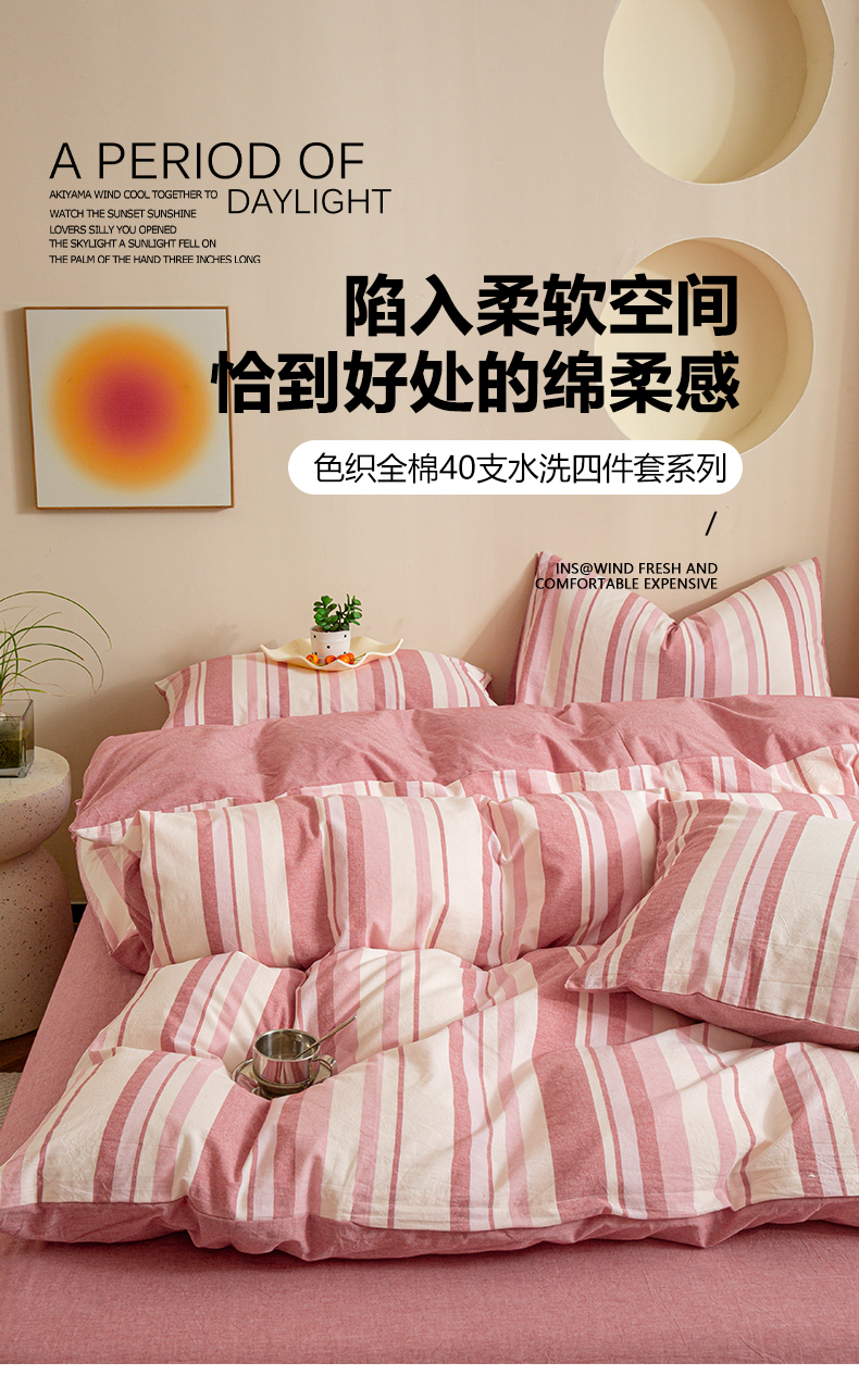 商品名称:优米家纺 2025新款色织全棉纯棉40支水洗四件套及床单系列-四件套 麦田粉