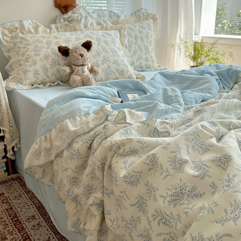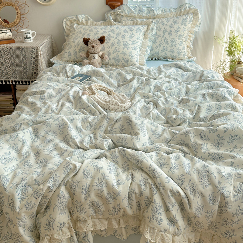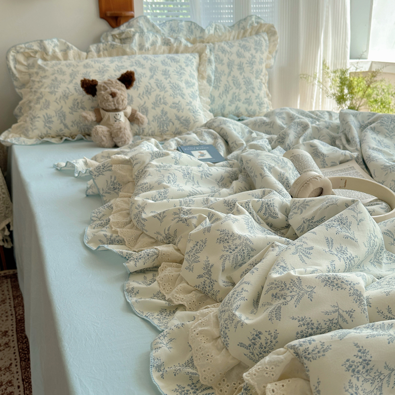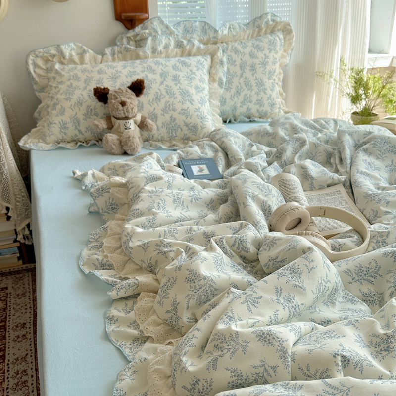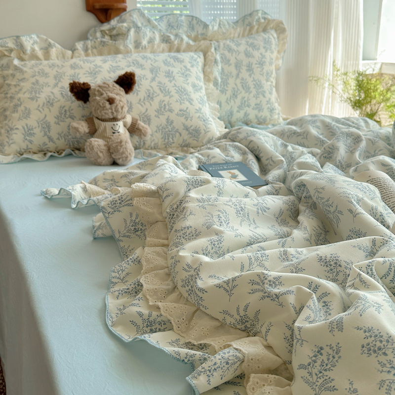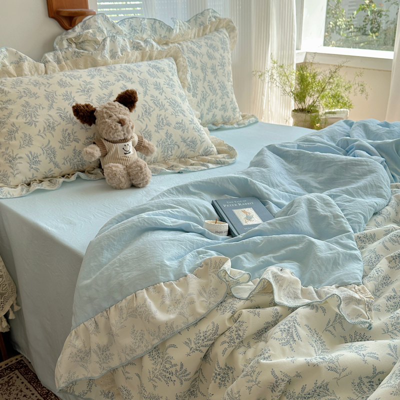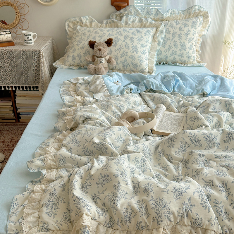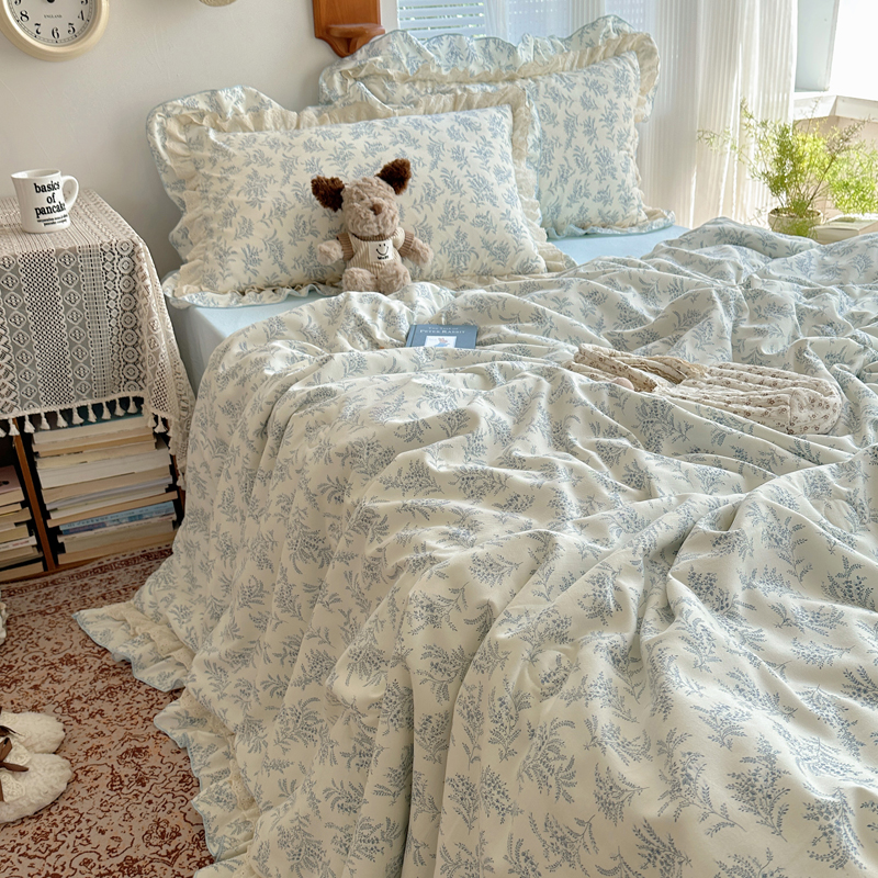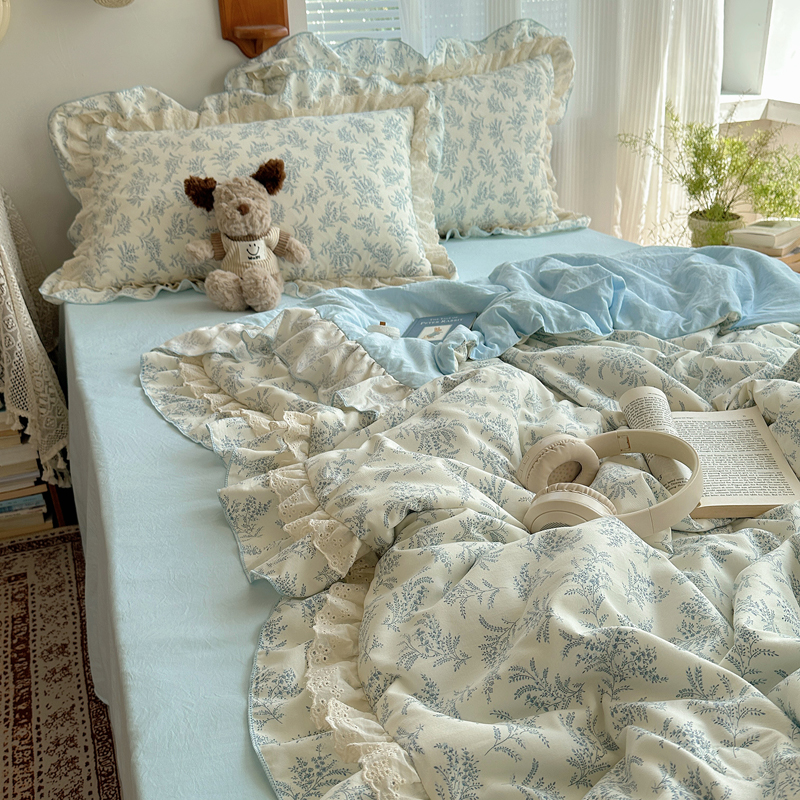 当前位置: 91家纺网 > 商品网购 > 床品套件 > 四件套 > 水洗棉四件套 > 轻奢坊 2025新款复古风双层纱水洗棉夏被四件套 夏被-麦穗蓝