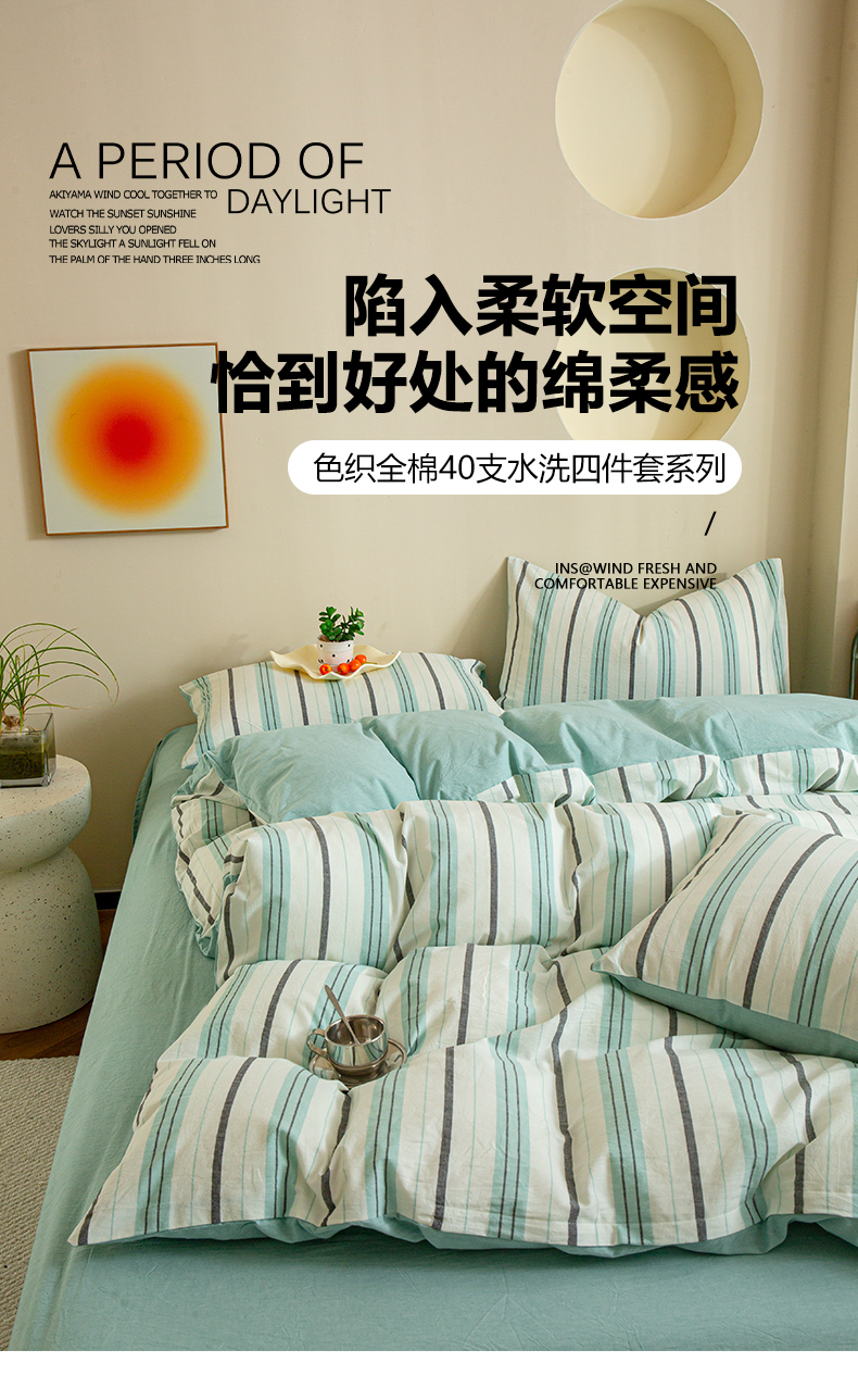 商品名称:优米家纺 2025新款色织全棉纯棉40支水洗四件套系列-单床单 草原绿