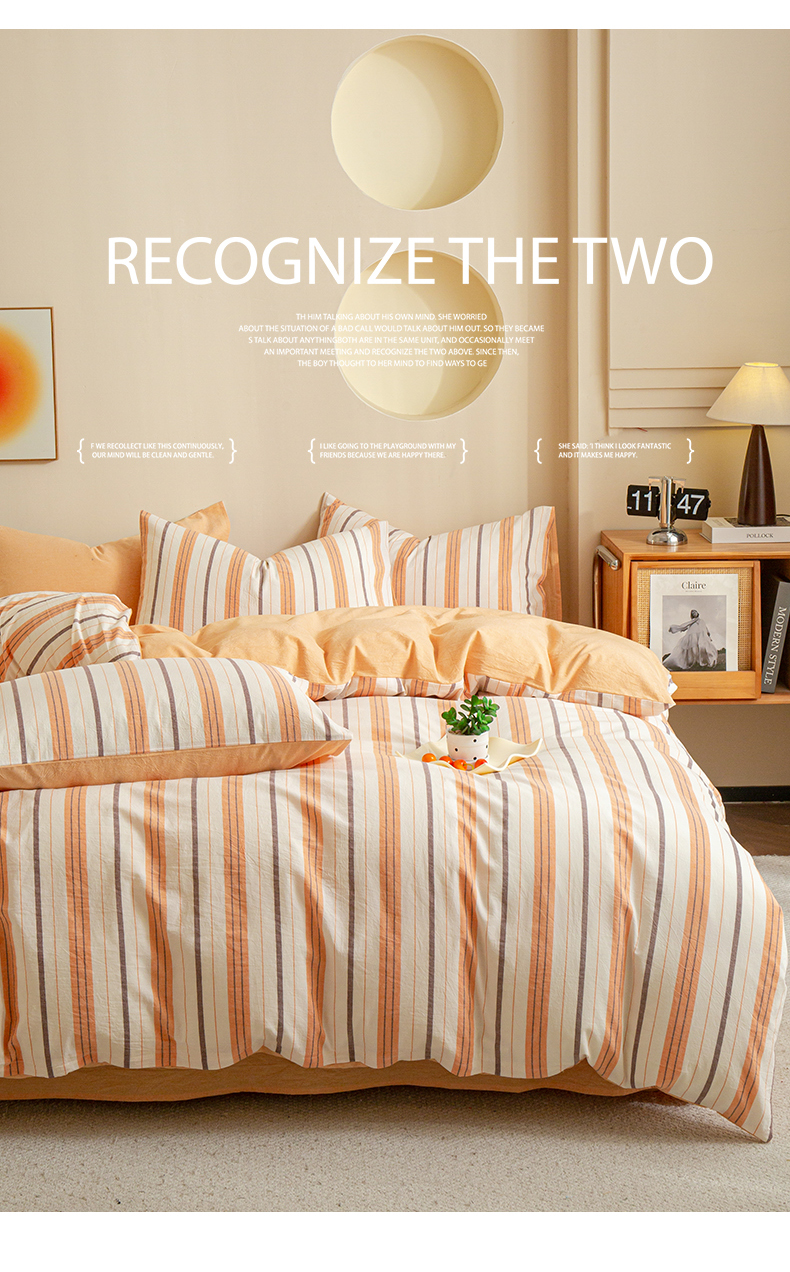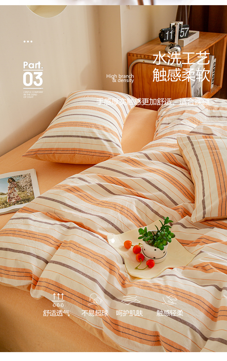 商品名称:优米家纺 2025新款色织全棉纯棉40支水洗四件套系列-单床单 泡芙桔